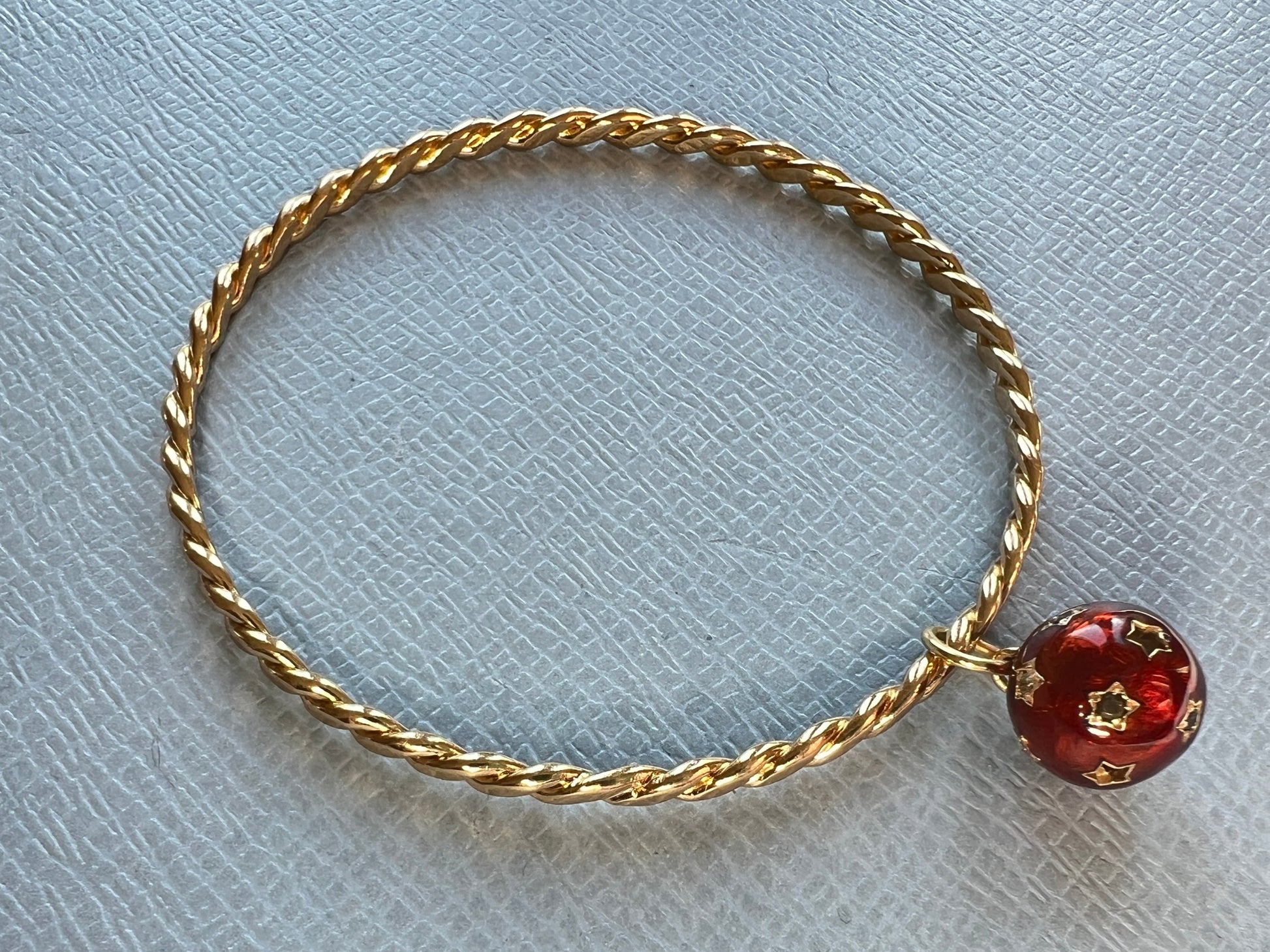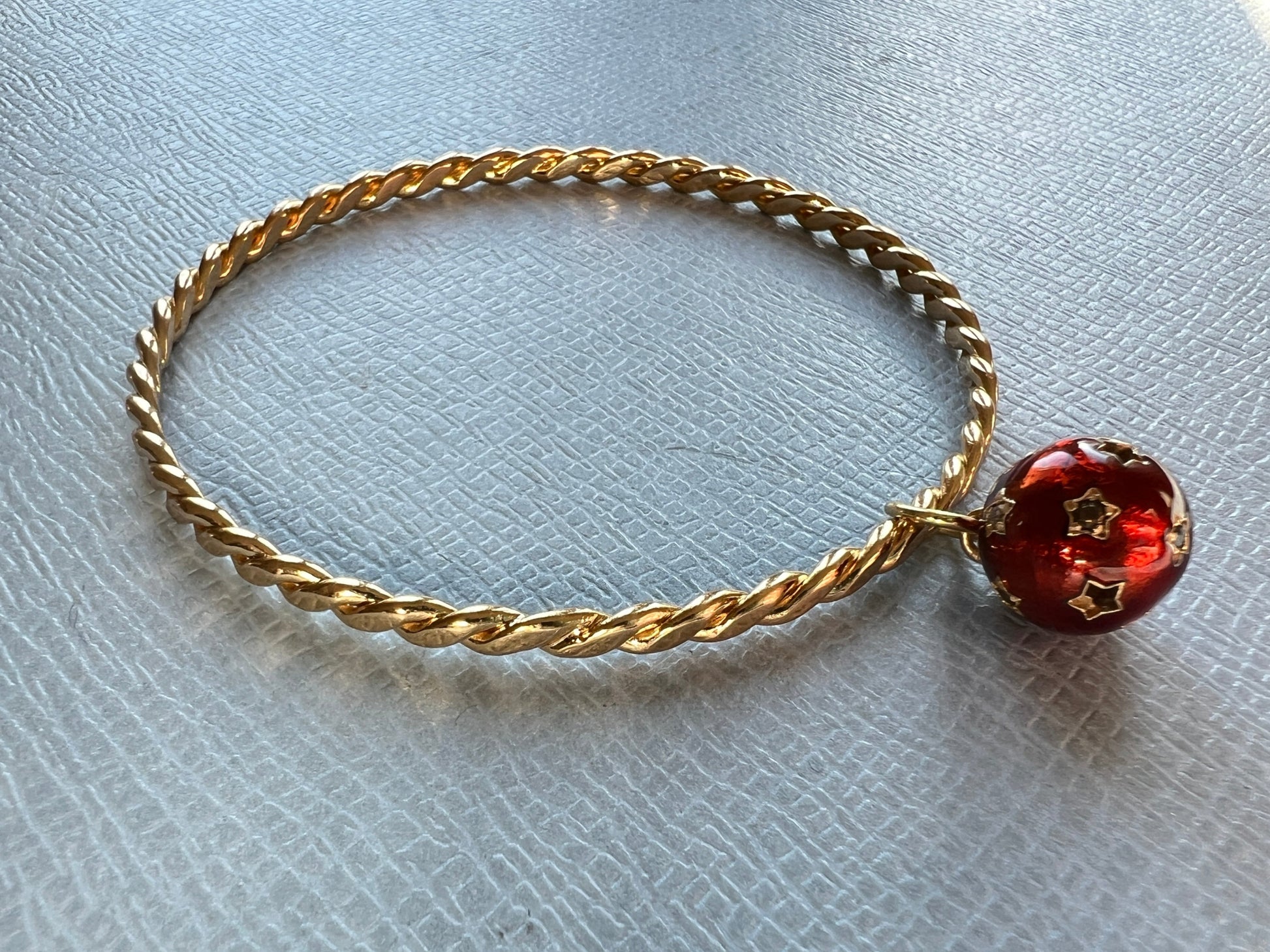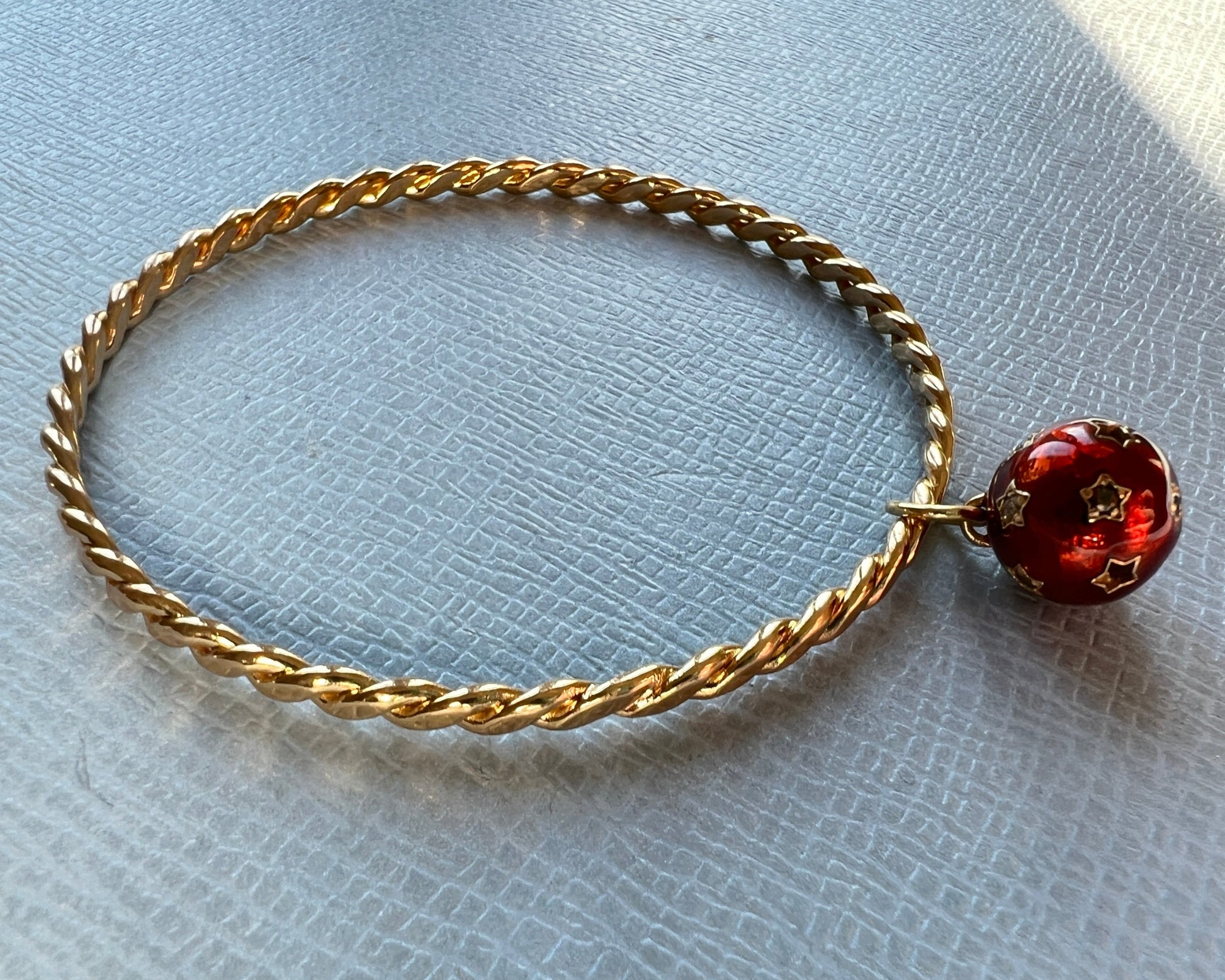 White and Black Diamond Dangling Sphere Bangle Red Enamel – 14K Gold Plate