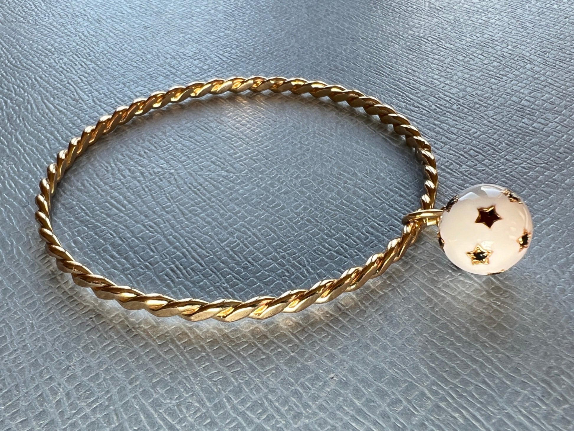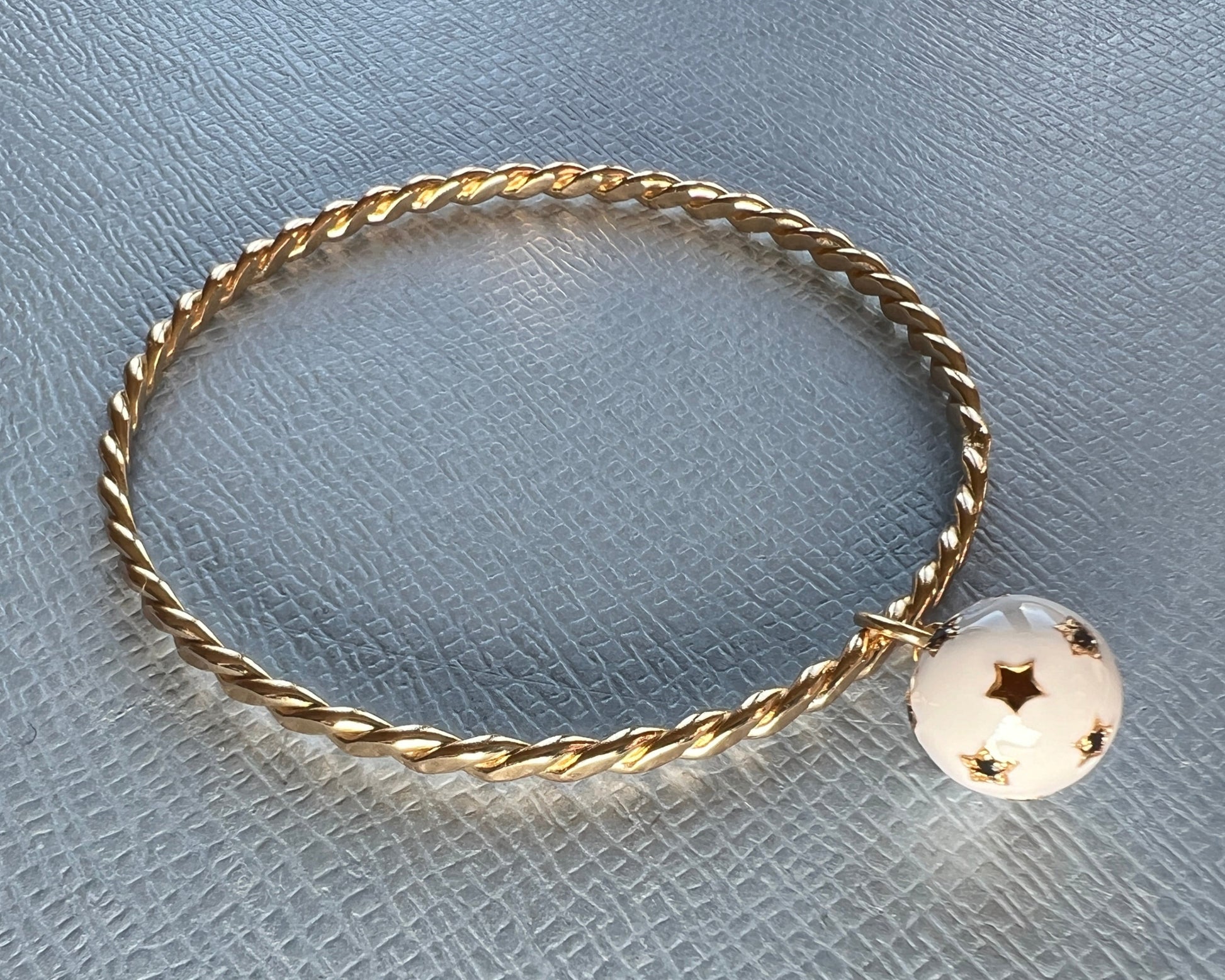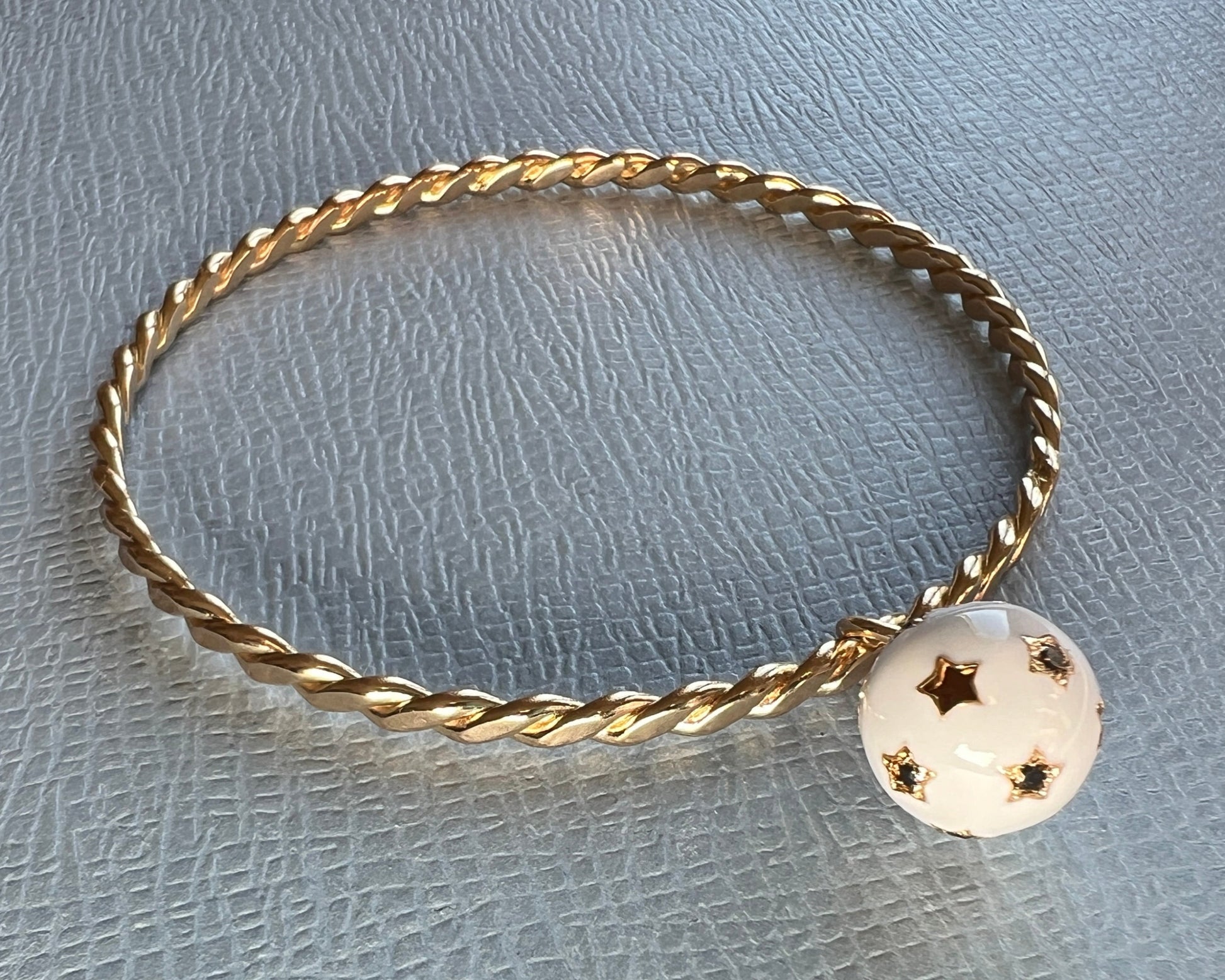 White and Black Diamond Dangling Sphere Bangle White Enamel – 14K Gold Plate