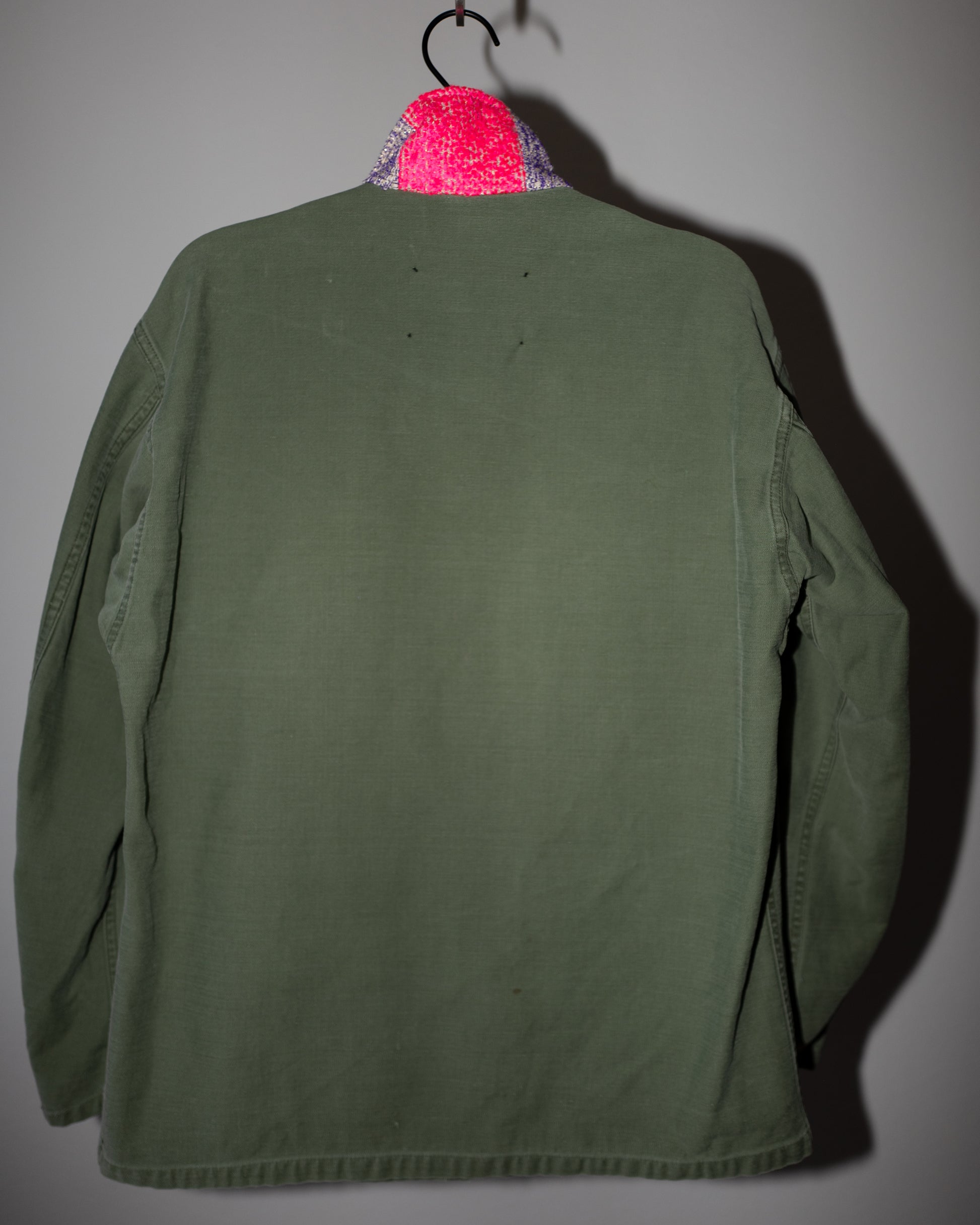 Military Green Jacket Neon Pink Tweed, Neon and Violet Collar Medium