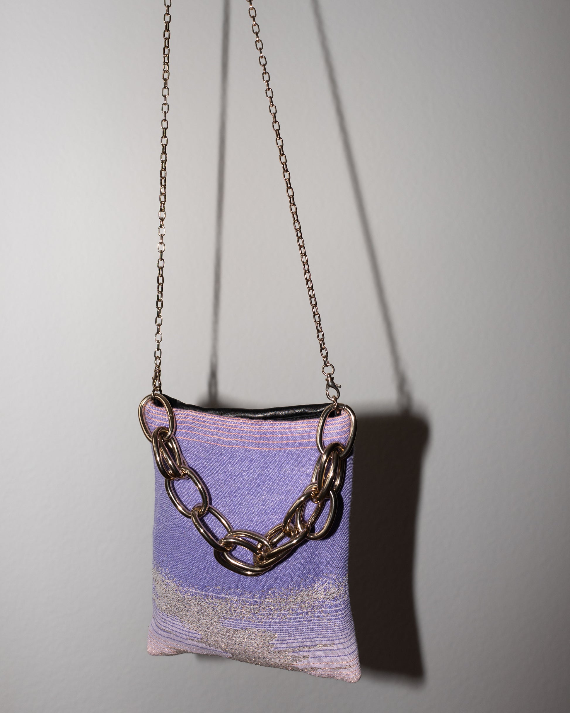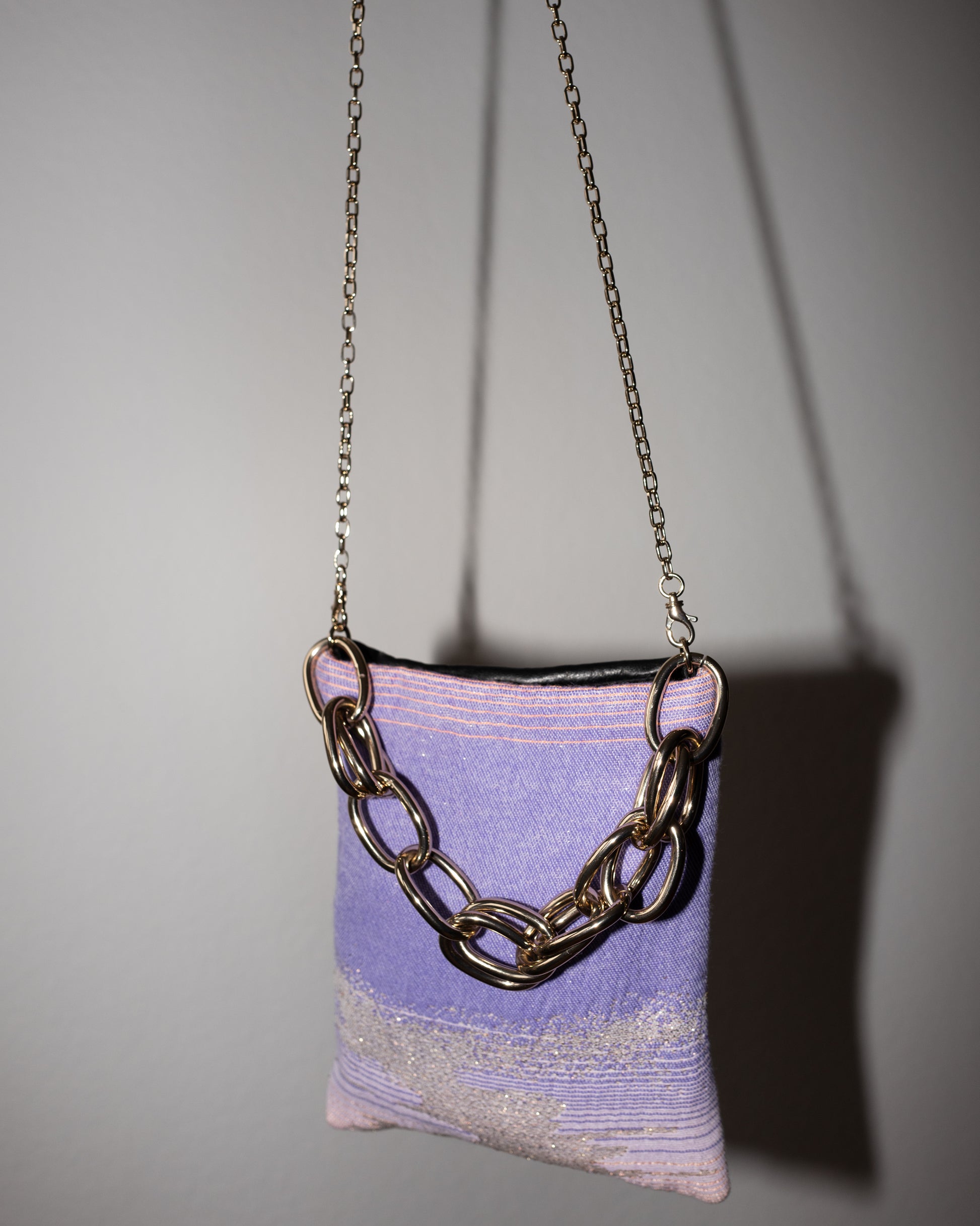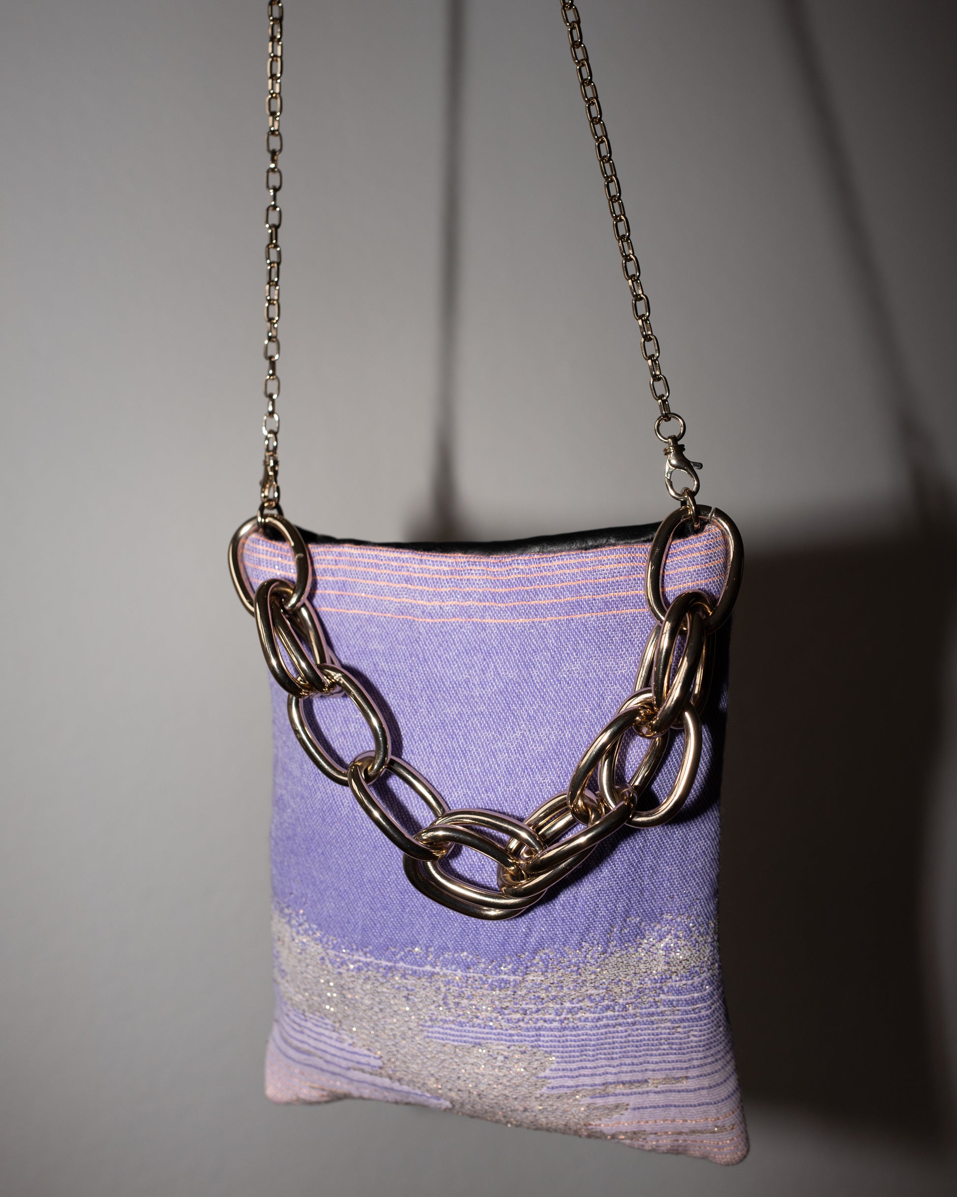 Bag with Lilac Pink Gold Lurex and Black Leather Gold Chain