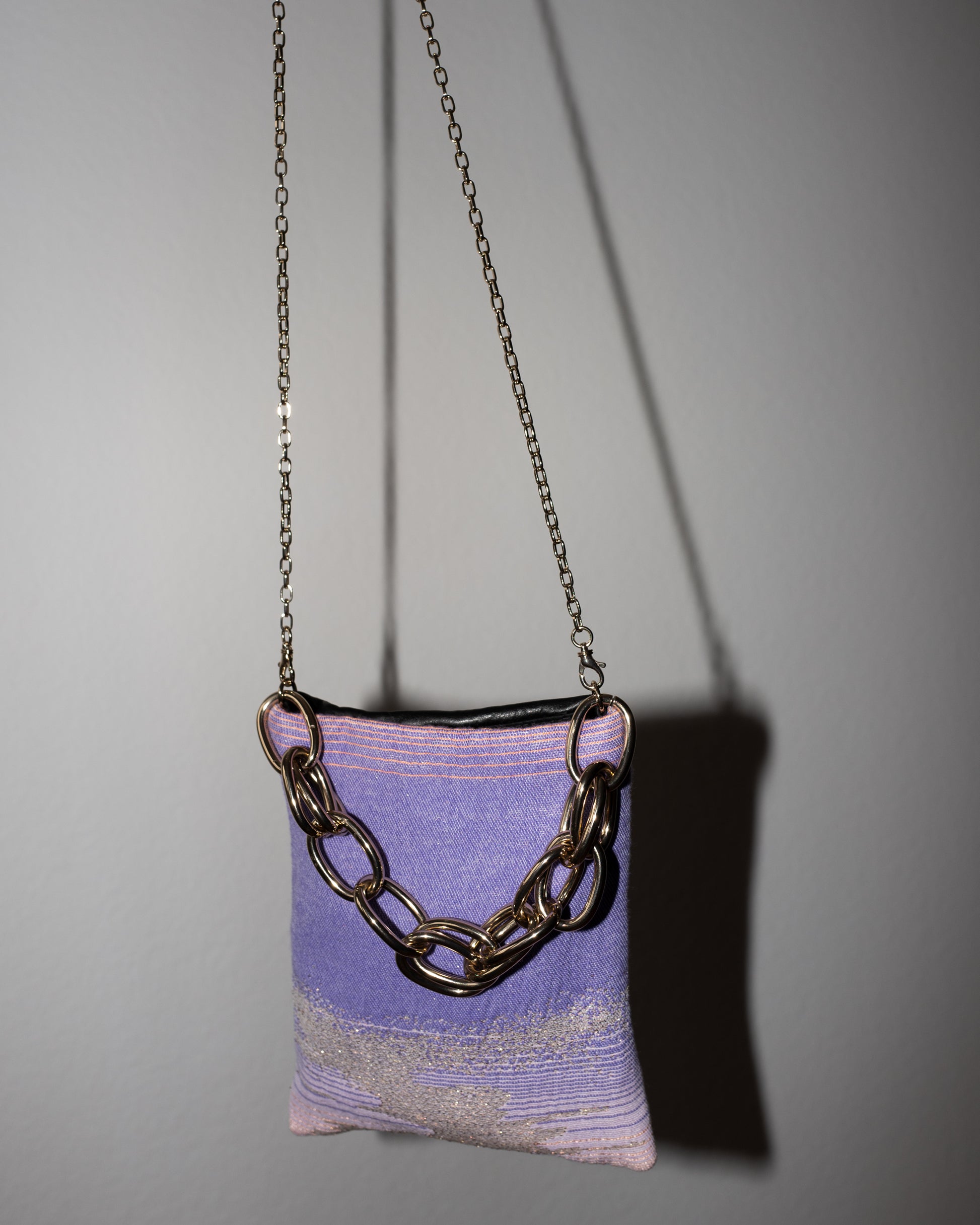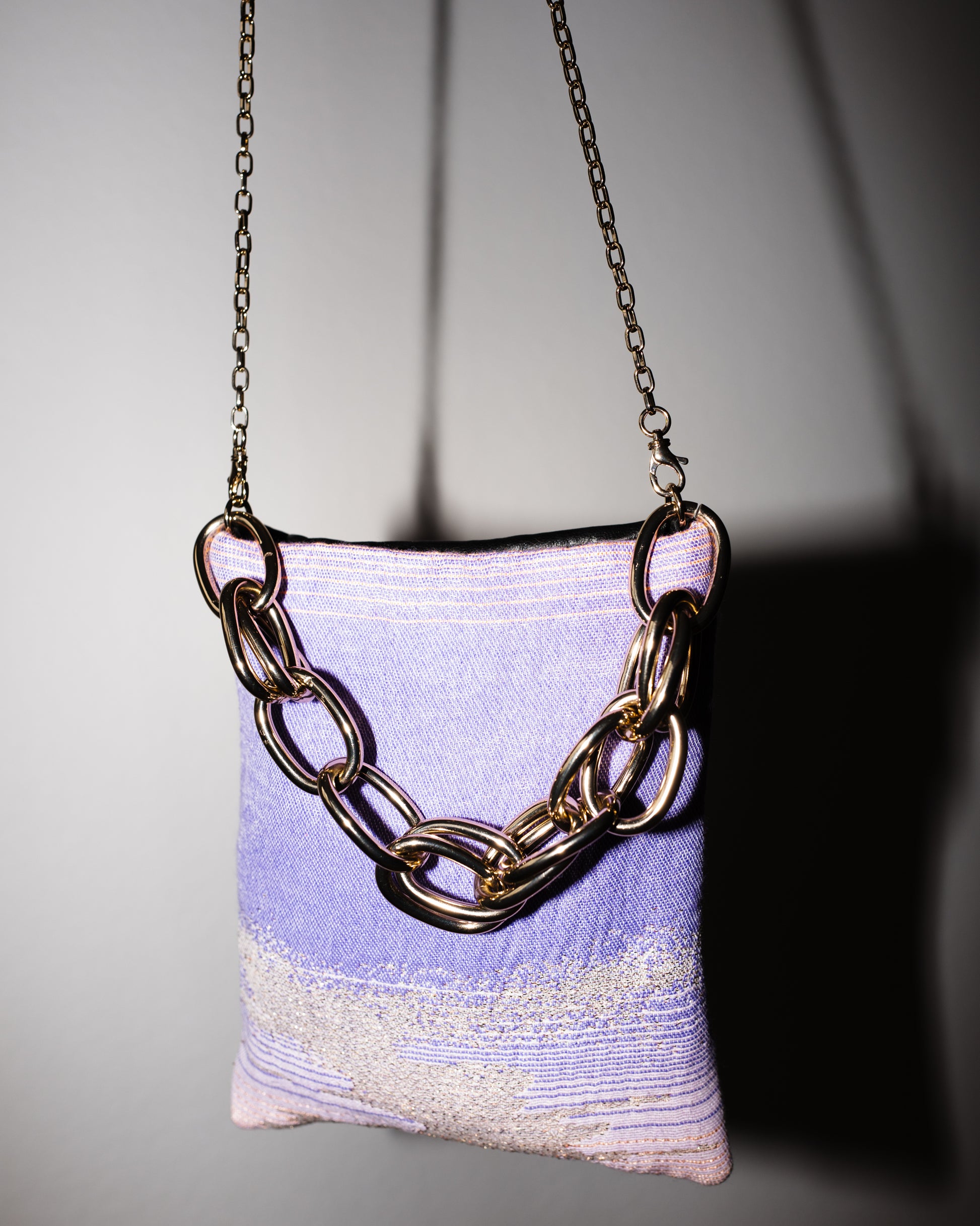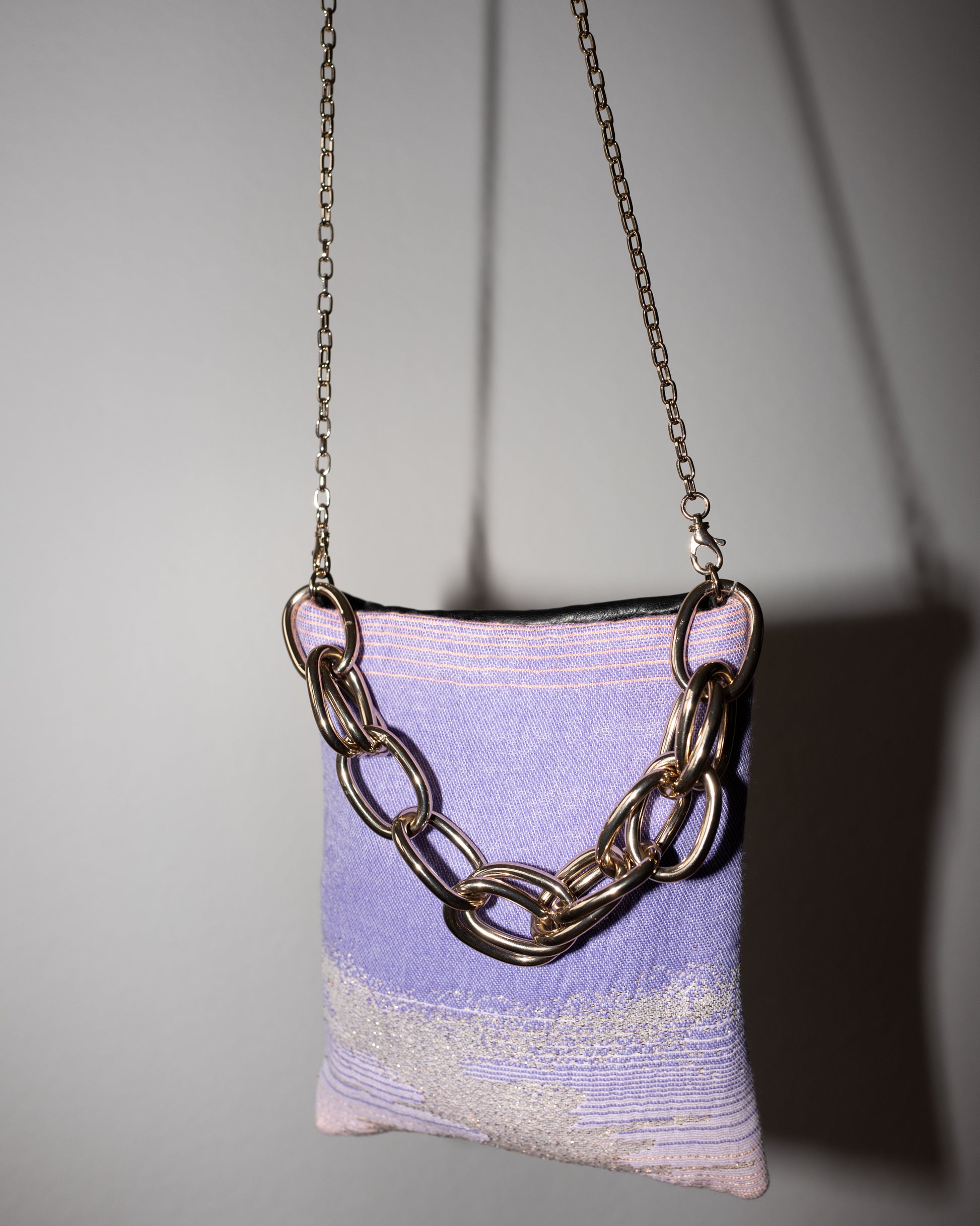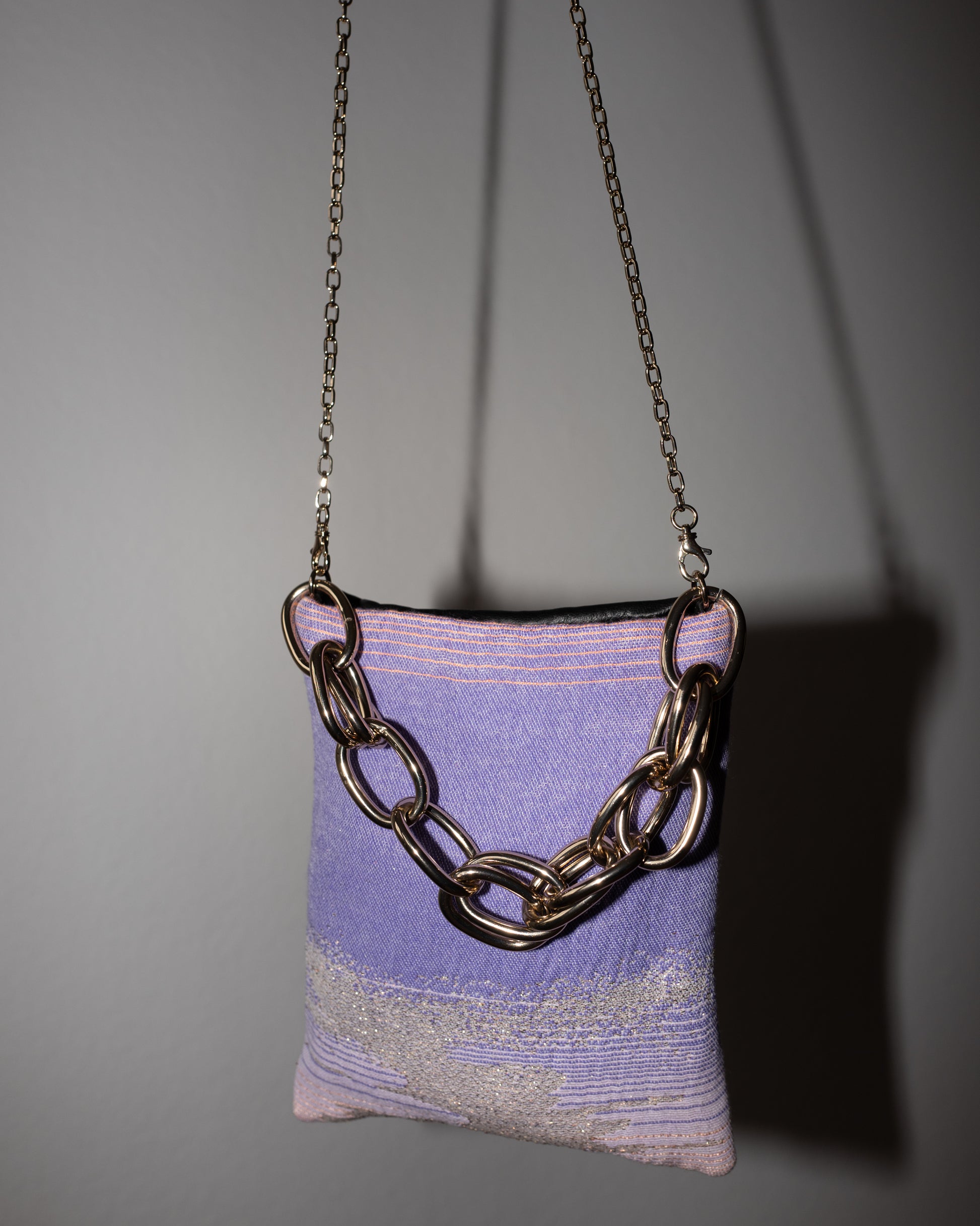 Bag with Lilac Pink Gold Lurex and Black Leather Gold Chain