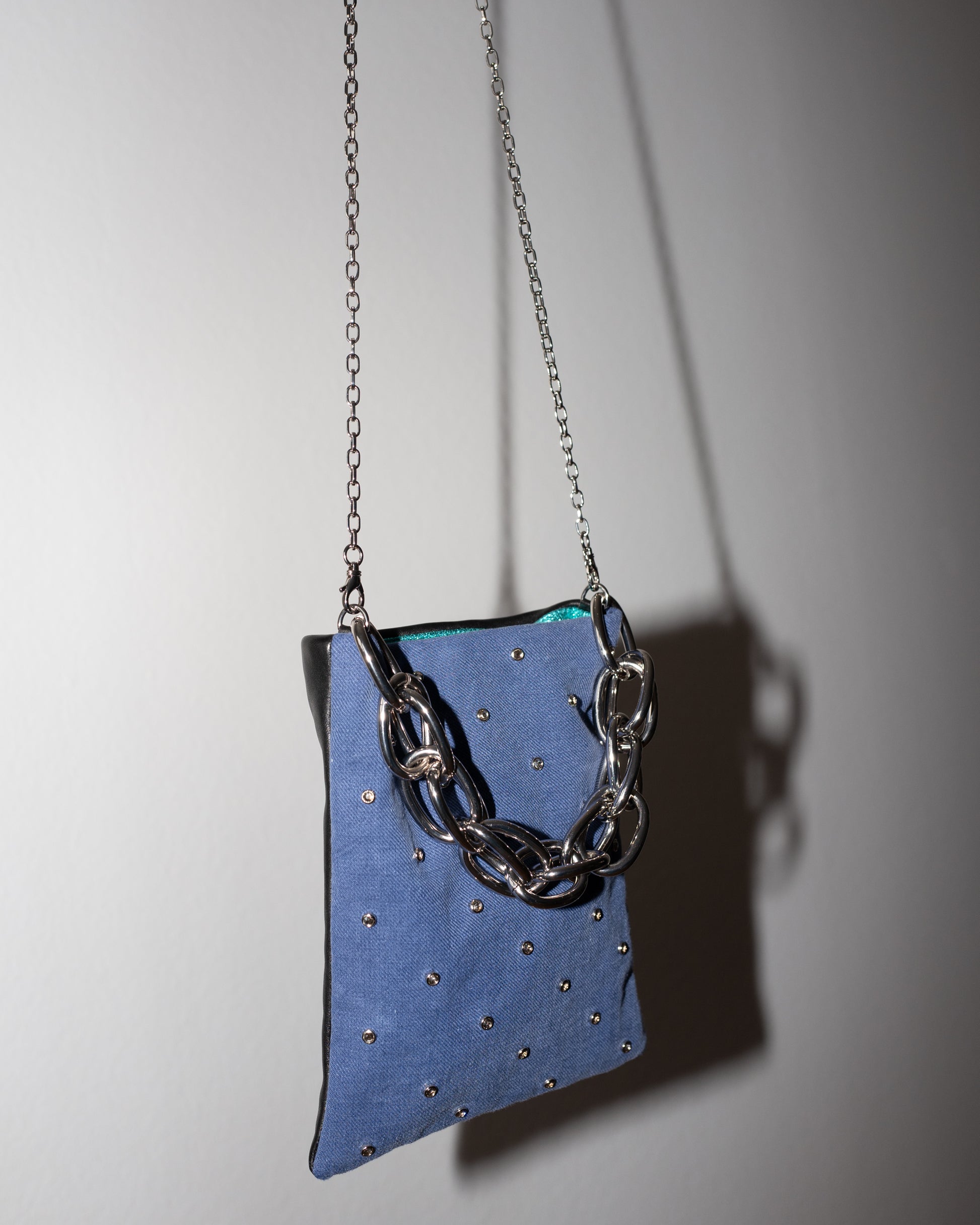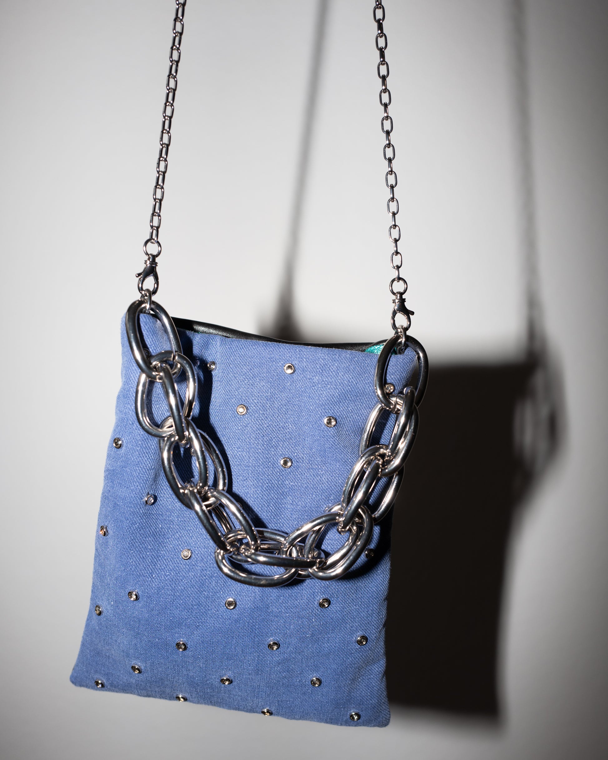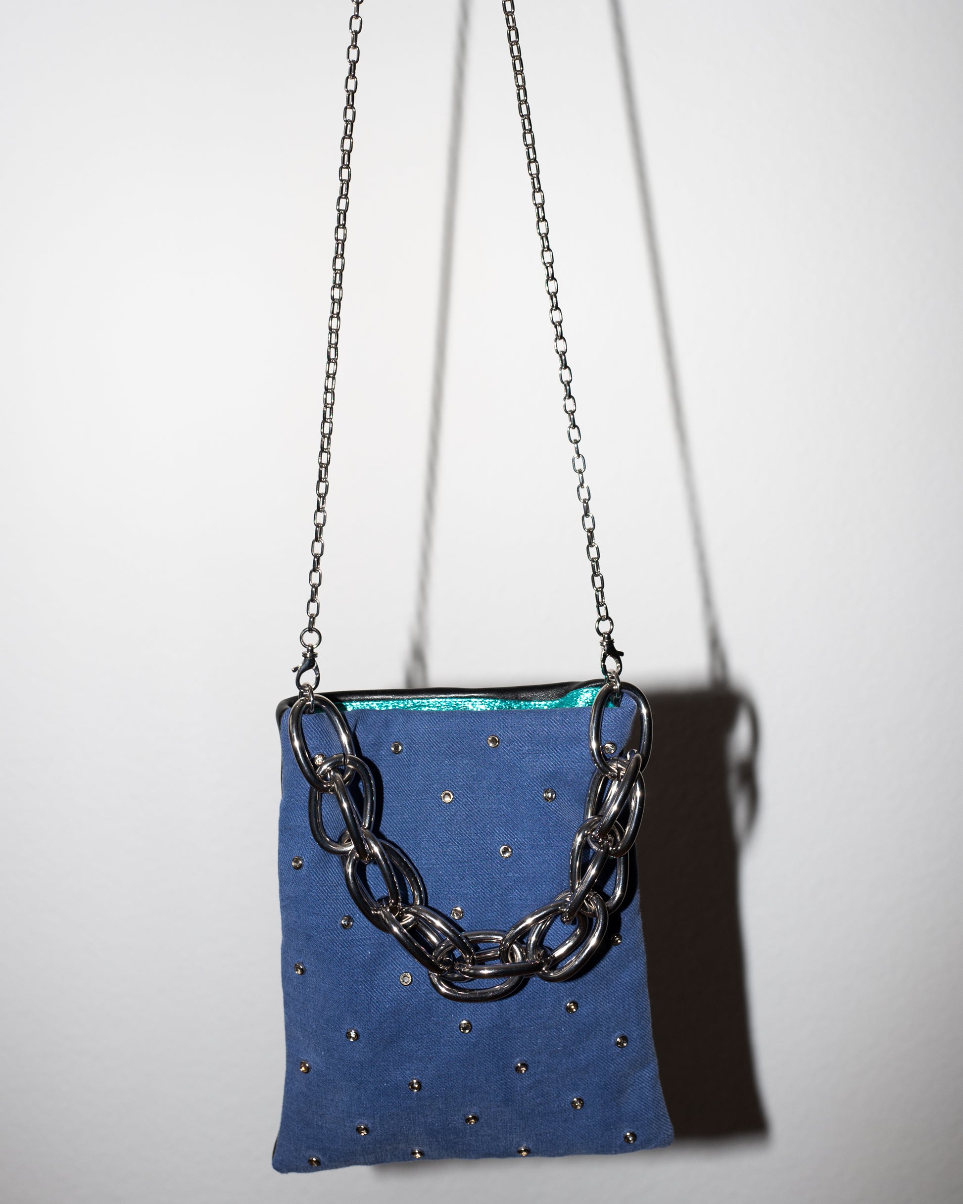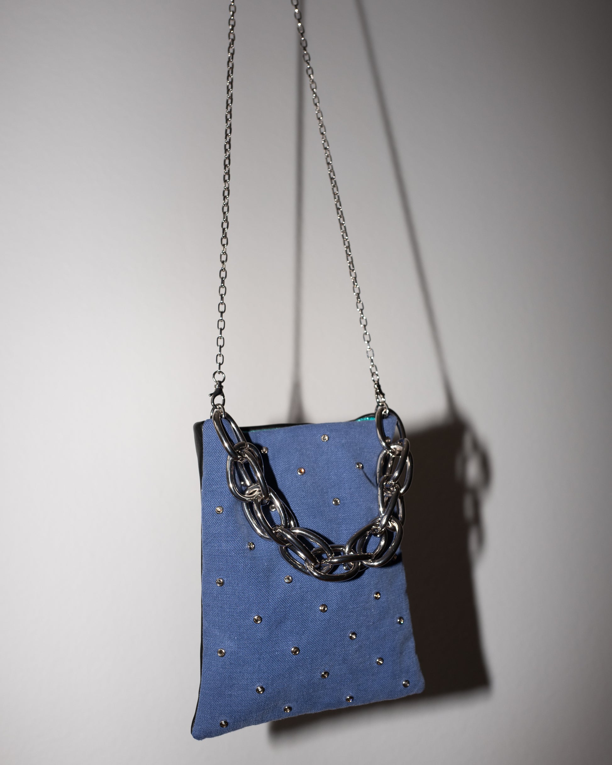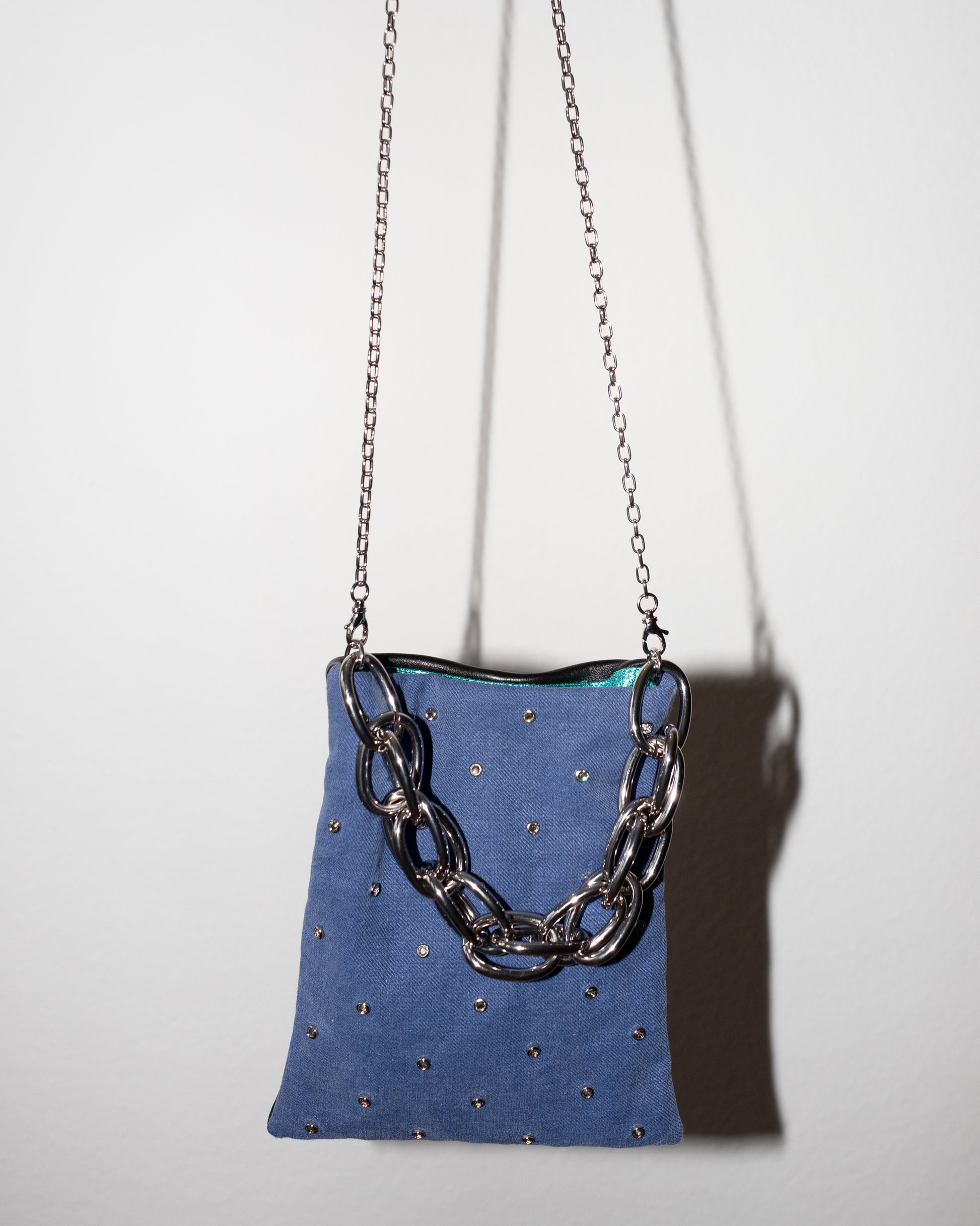 Bag with Swarovski Crystals Blue French Workwear Palladium Chain