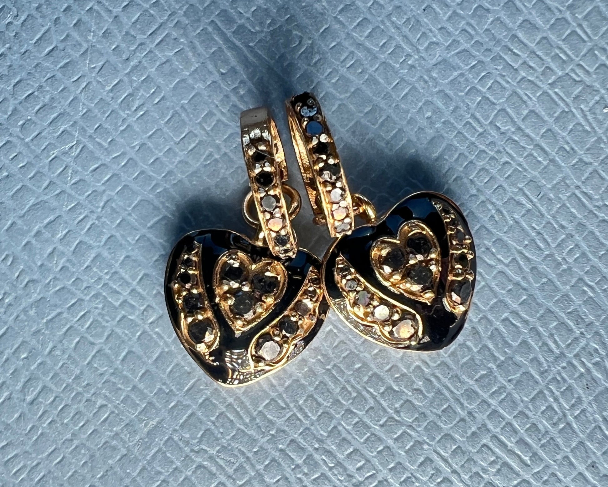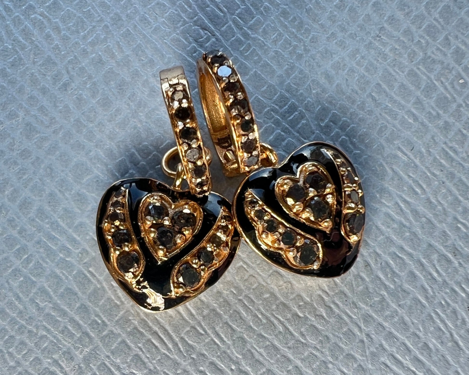 Black Diamond Heart Hoop Earring , made in 14K gold-plated Silver with Black Enamel