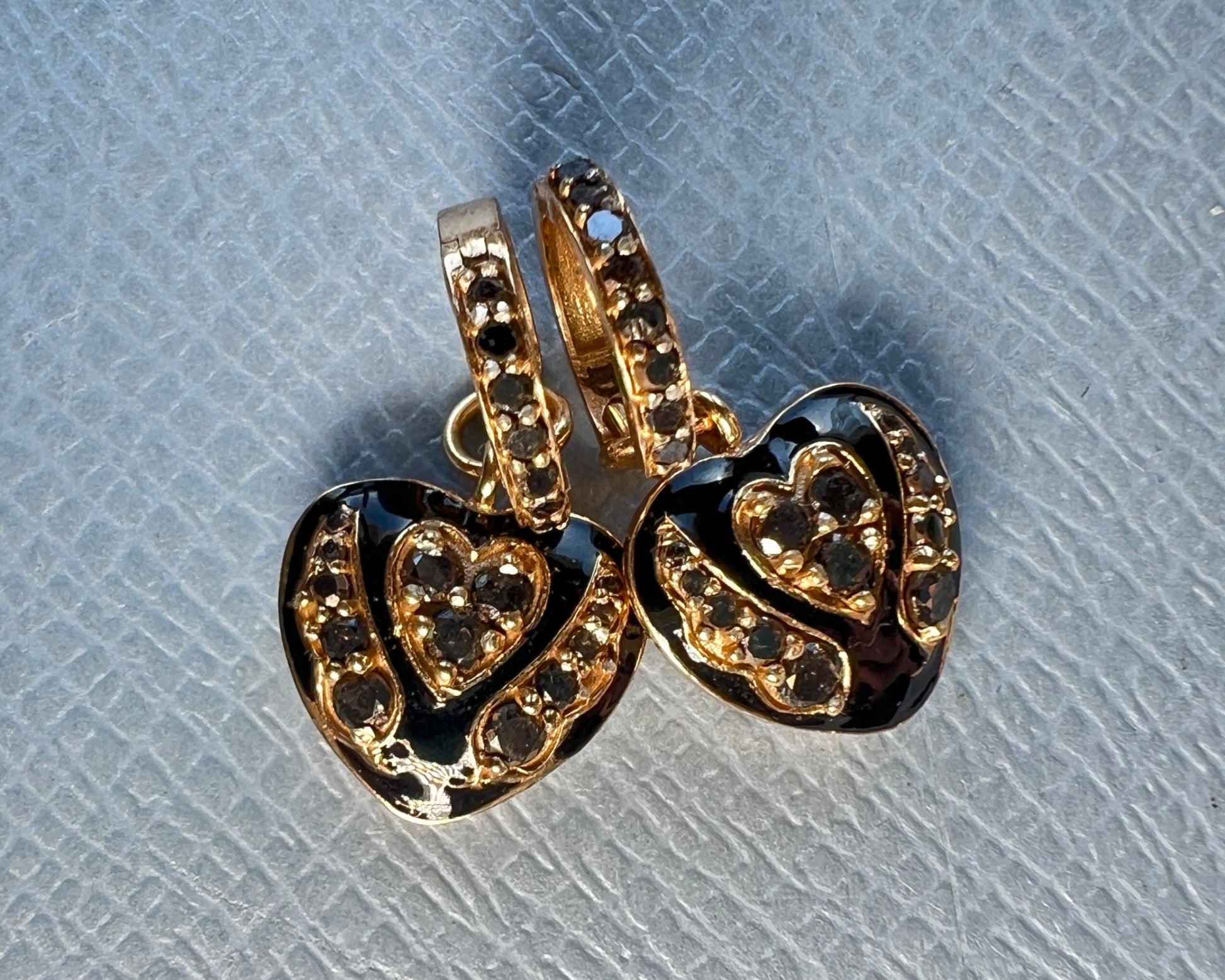 Black Diamond Heart Earring Black Enamel – 14K Gold Plate