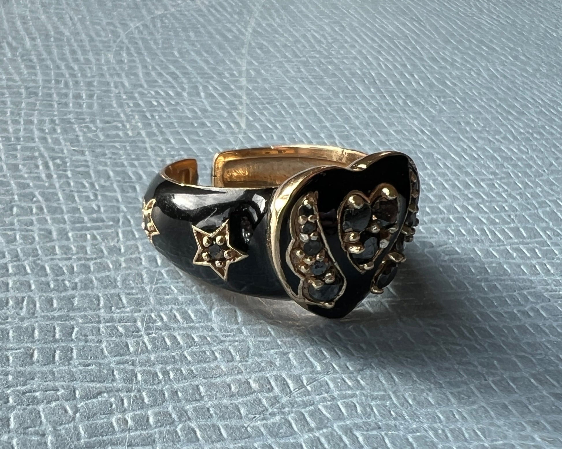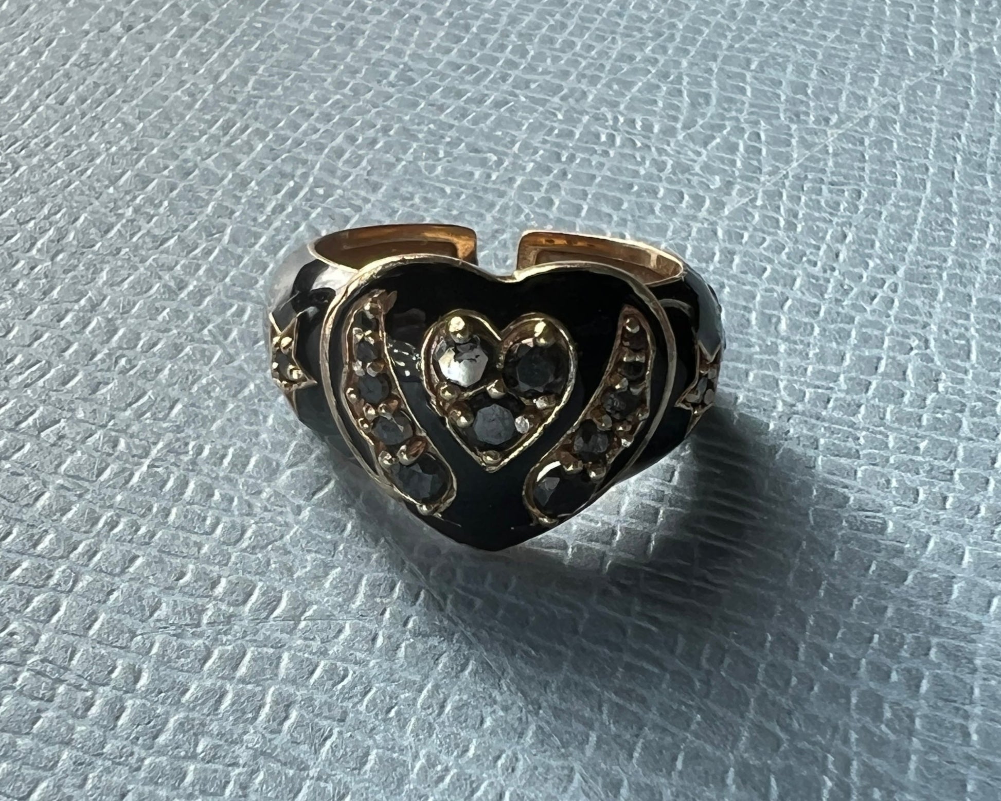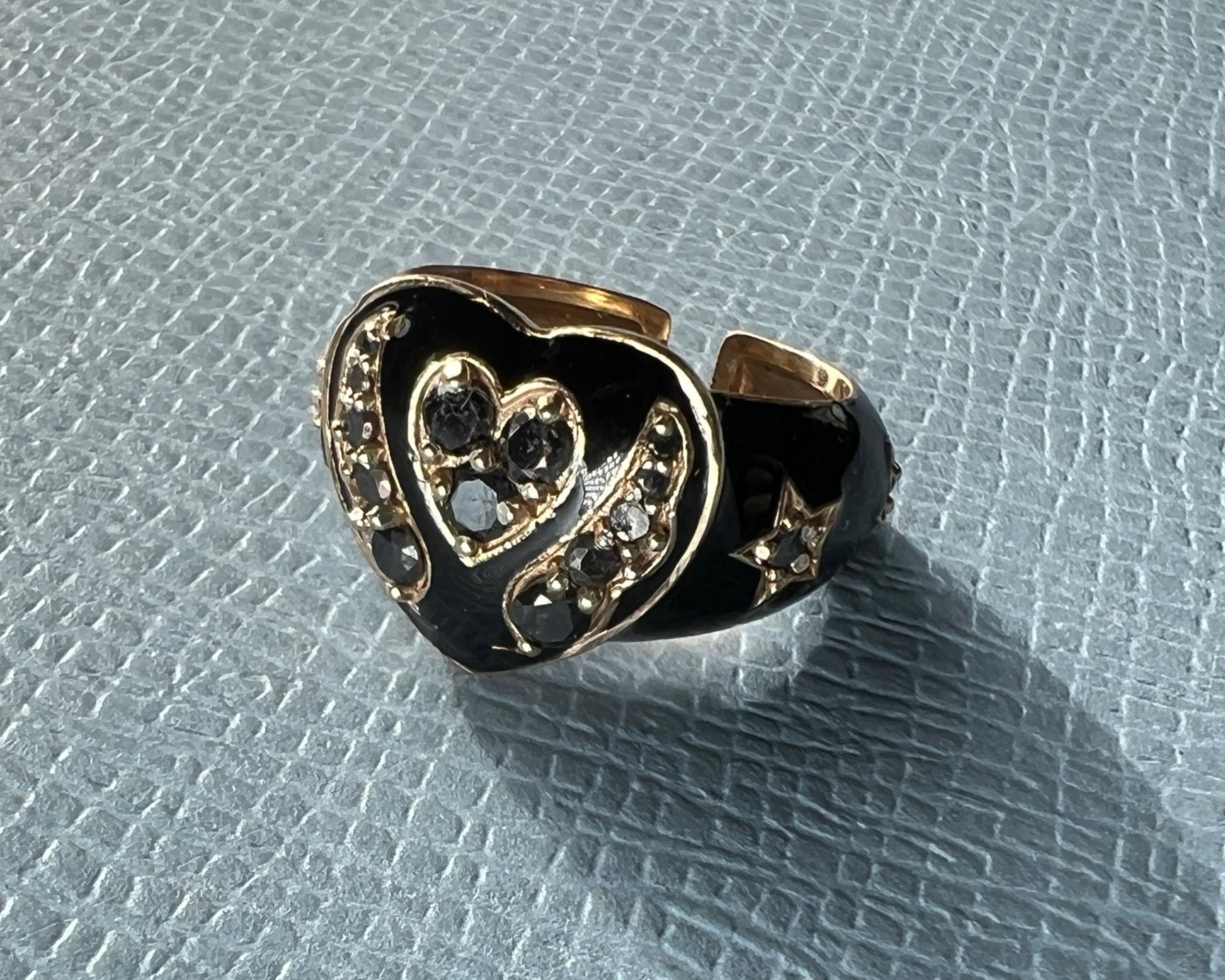 Black Diamond Heart Ring Black Enamel – 14K Gold Plated Silver