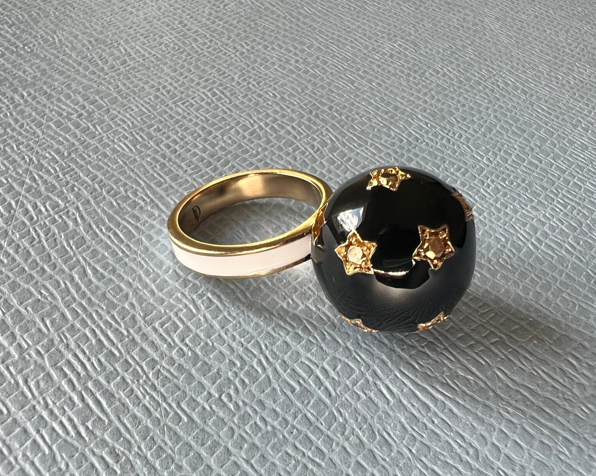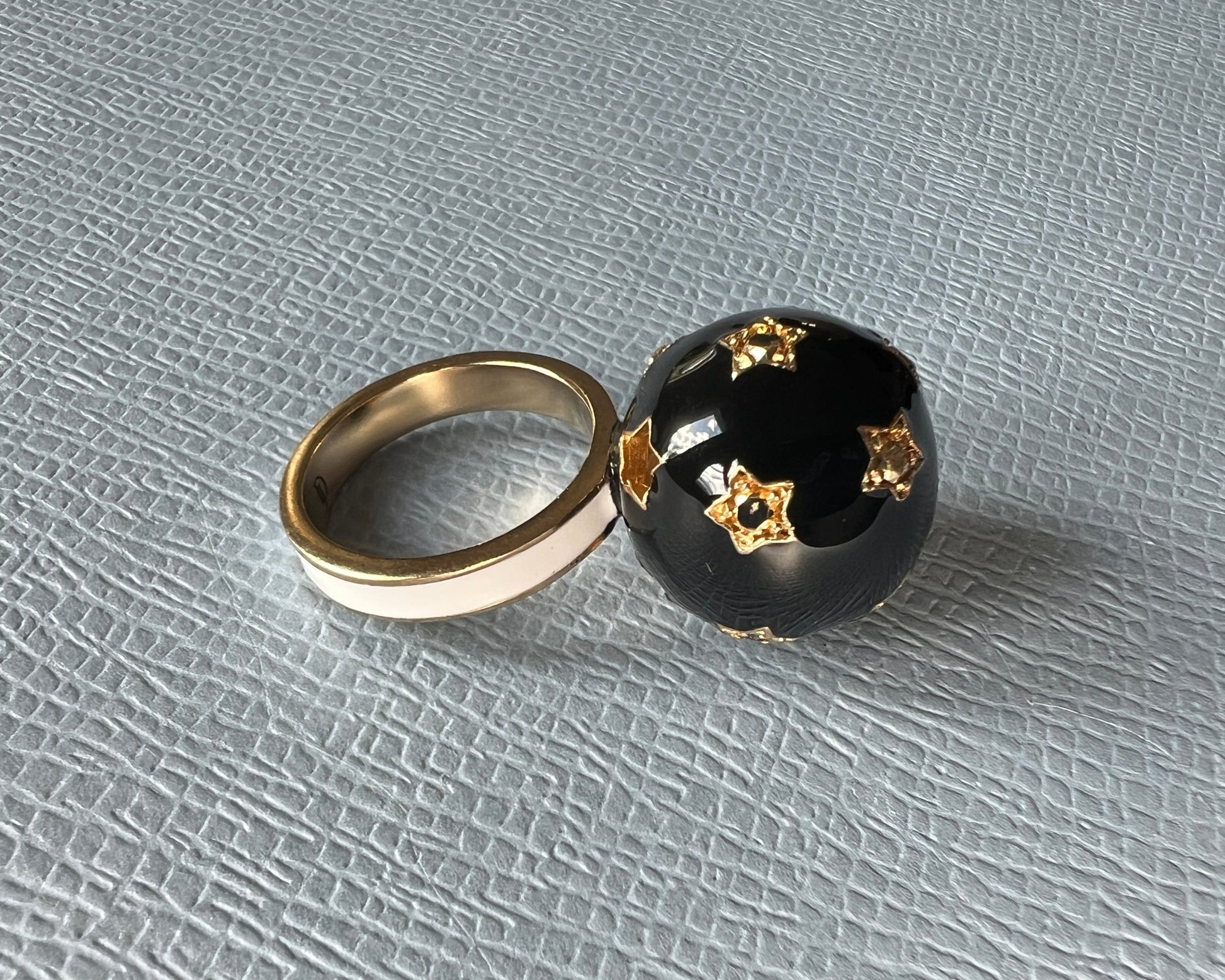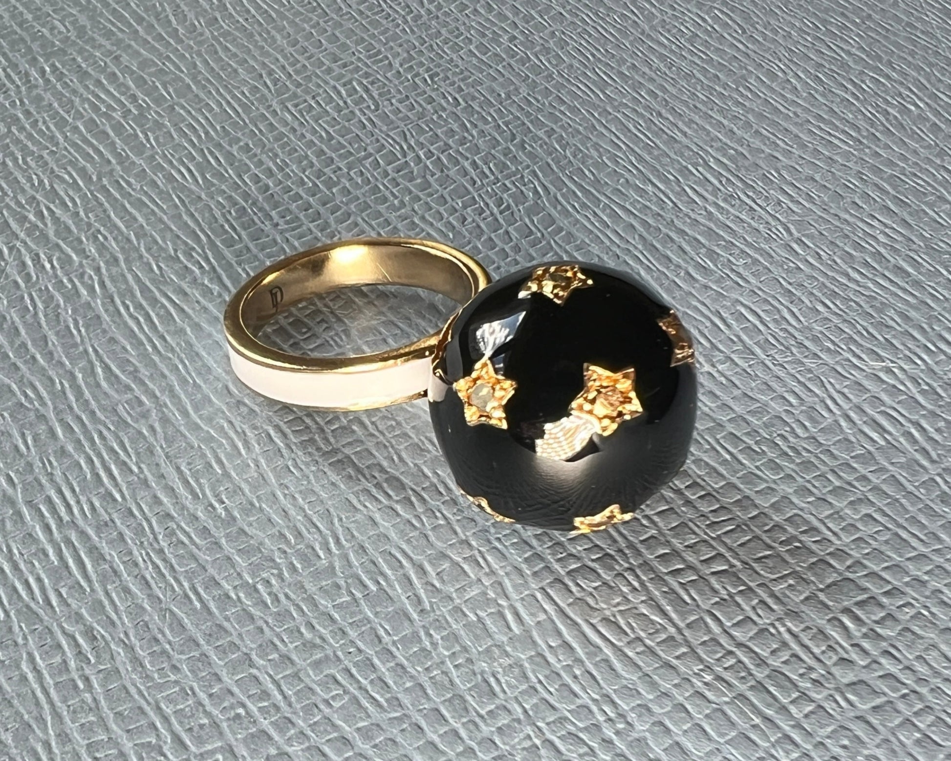 Black and White Diamond Sphere Ring Black Enamel  –  14K Gold Brass