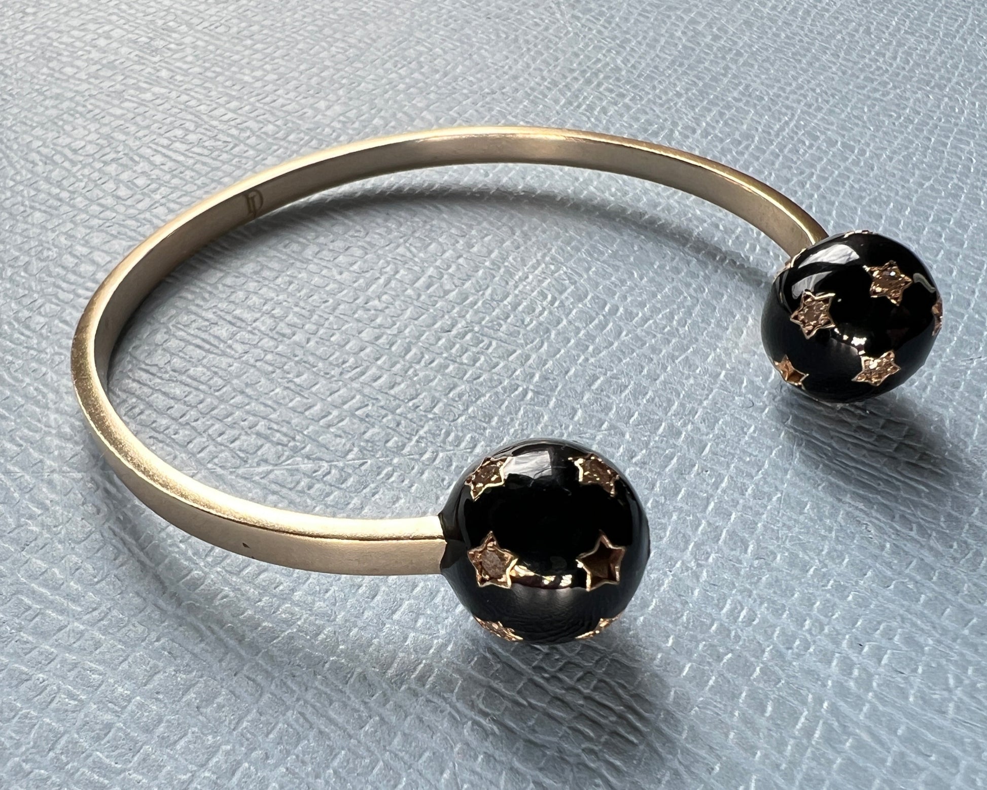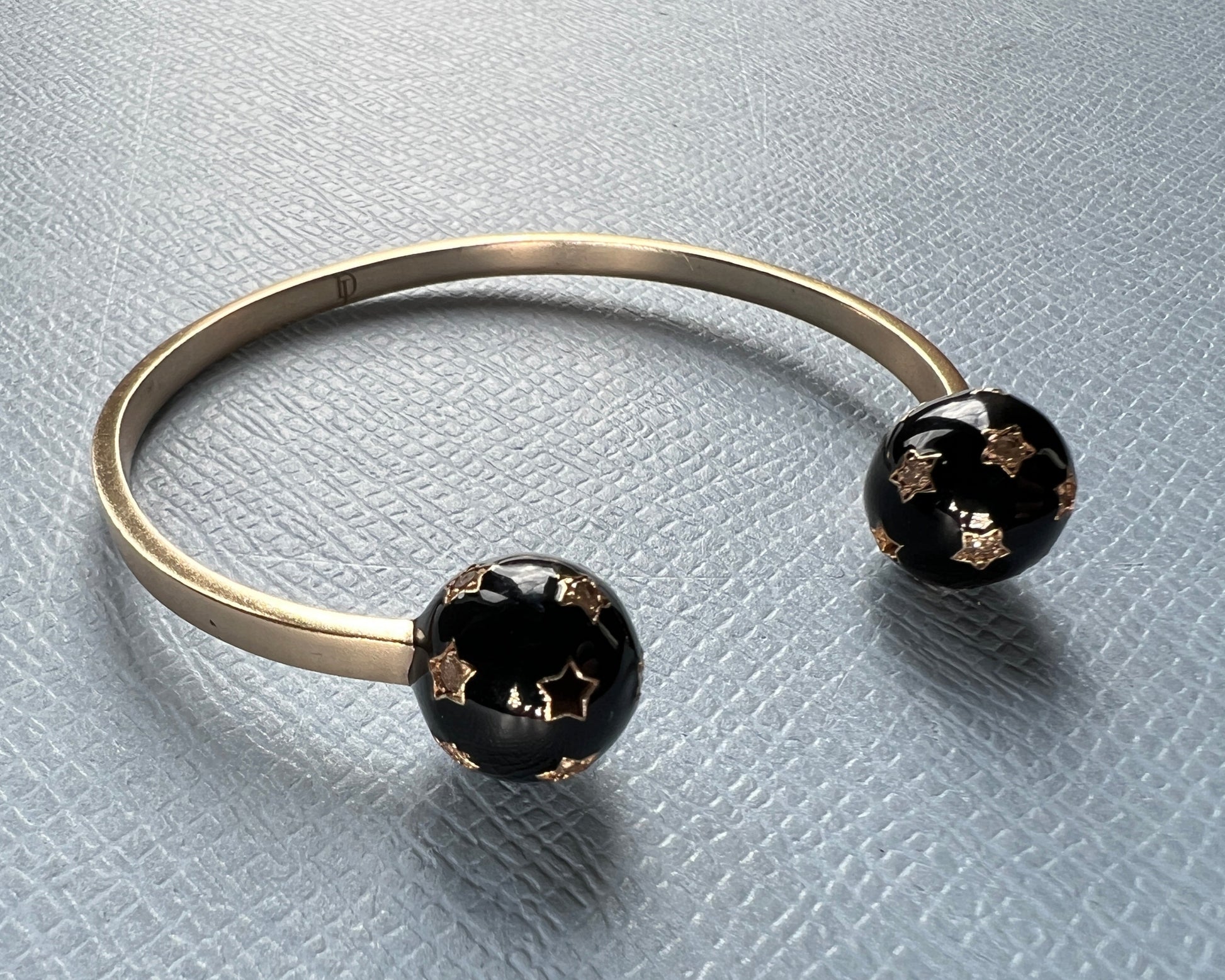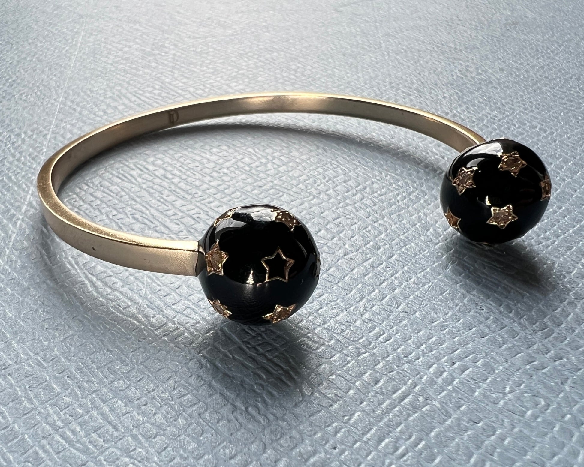 Black Diamond Spheres Bangle – 14K Gold-Plate