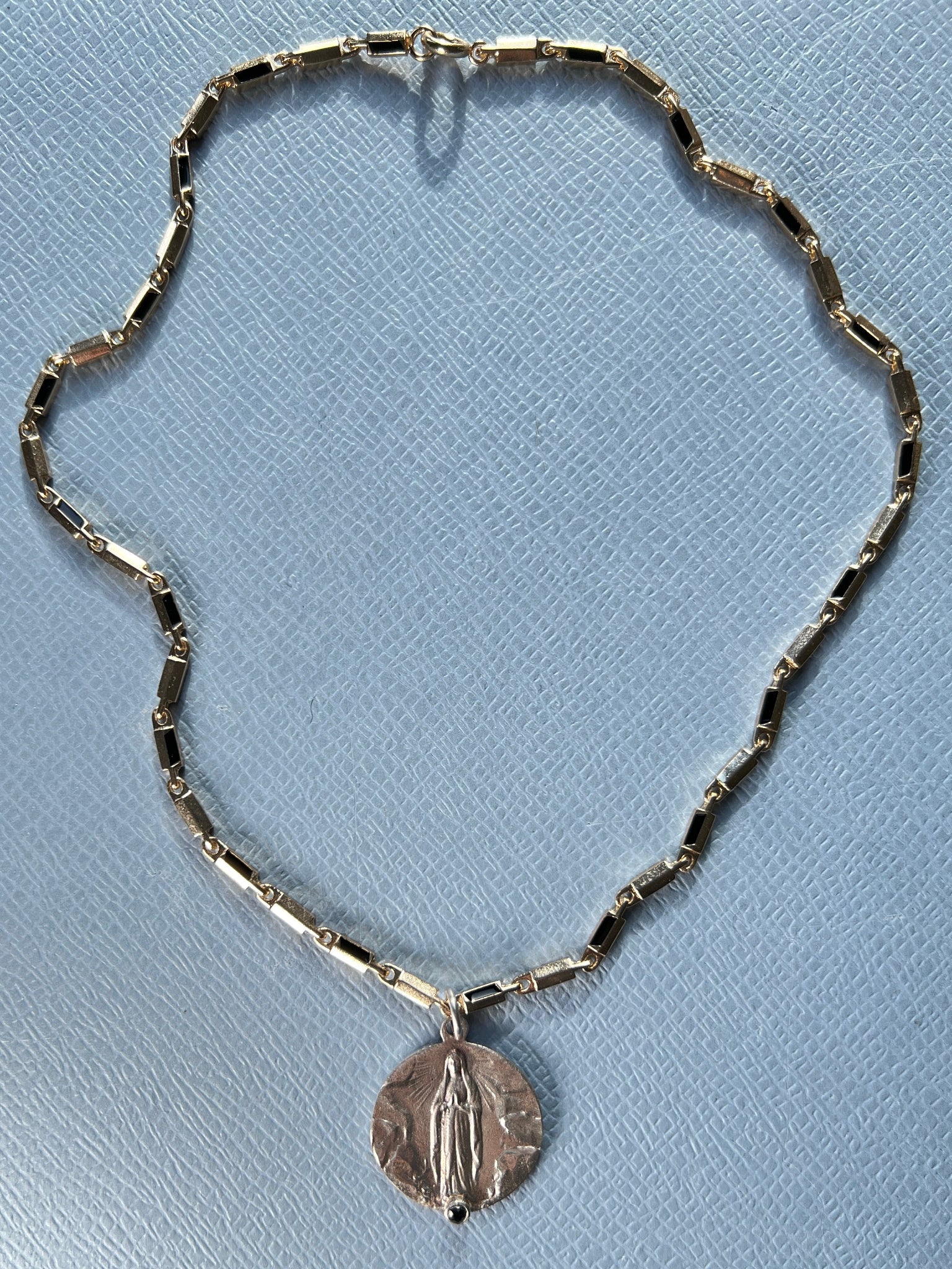 Black Diamond Virgin Mary Medal – 14K Gold-Plated Choker Chain