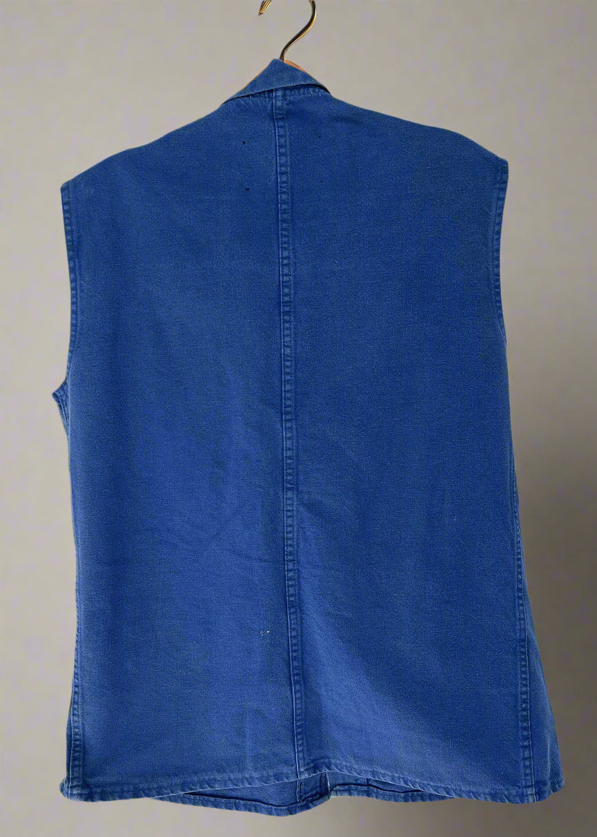 Cobalt Blue Sleeveless French Workwear Jacket – Chains & Gold-Plated Buttons