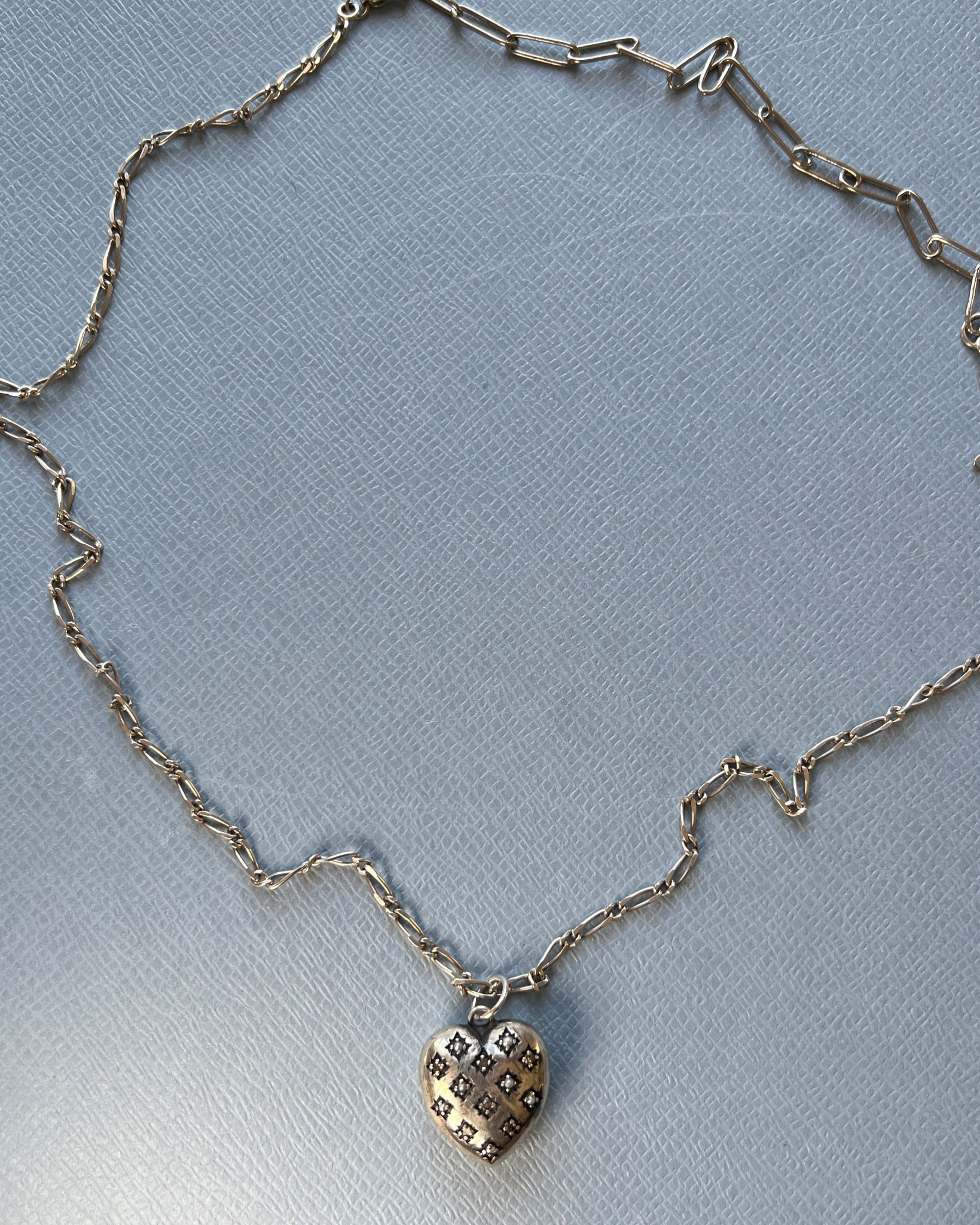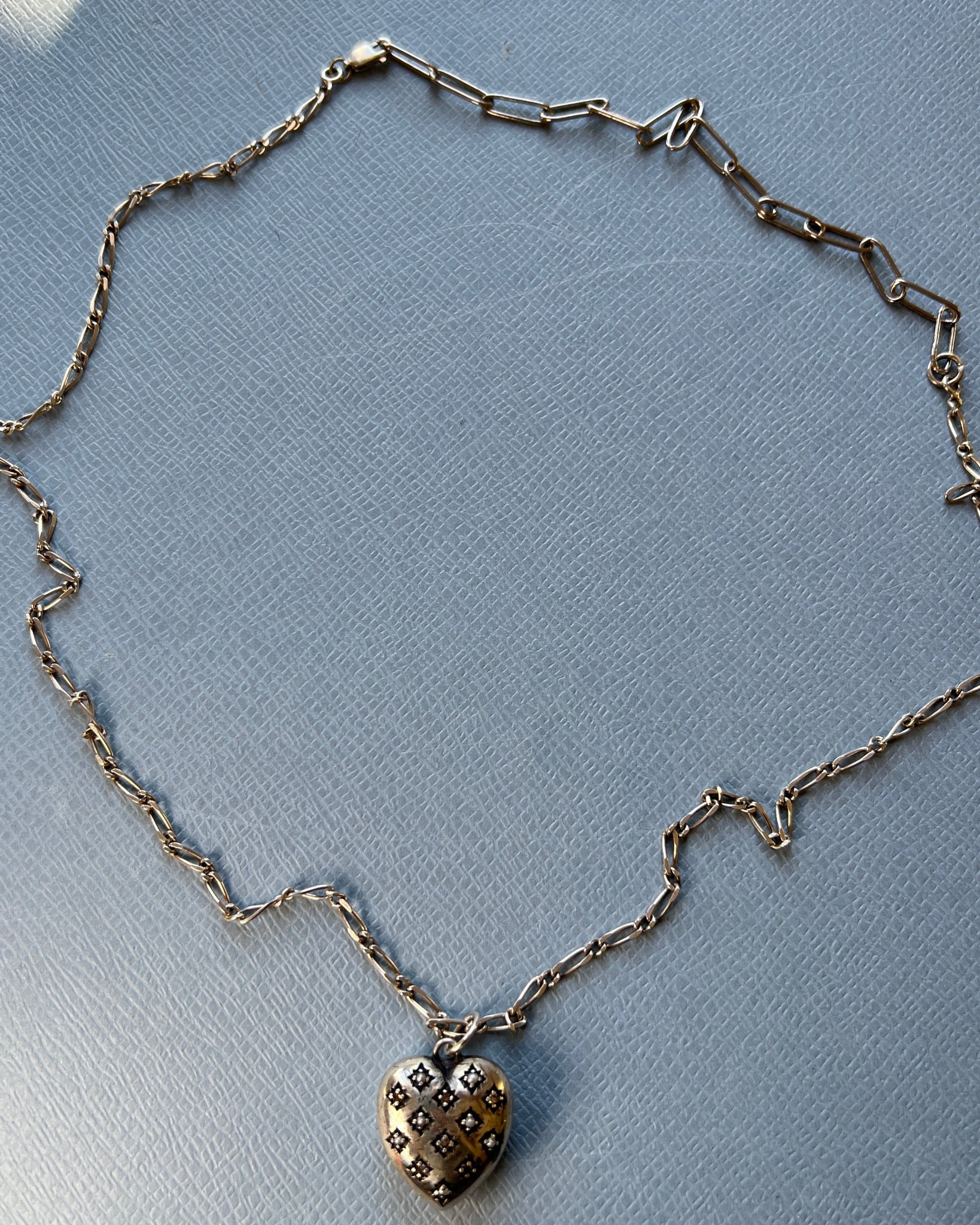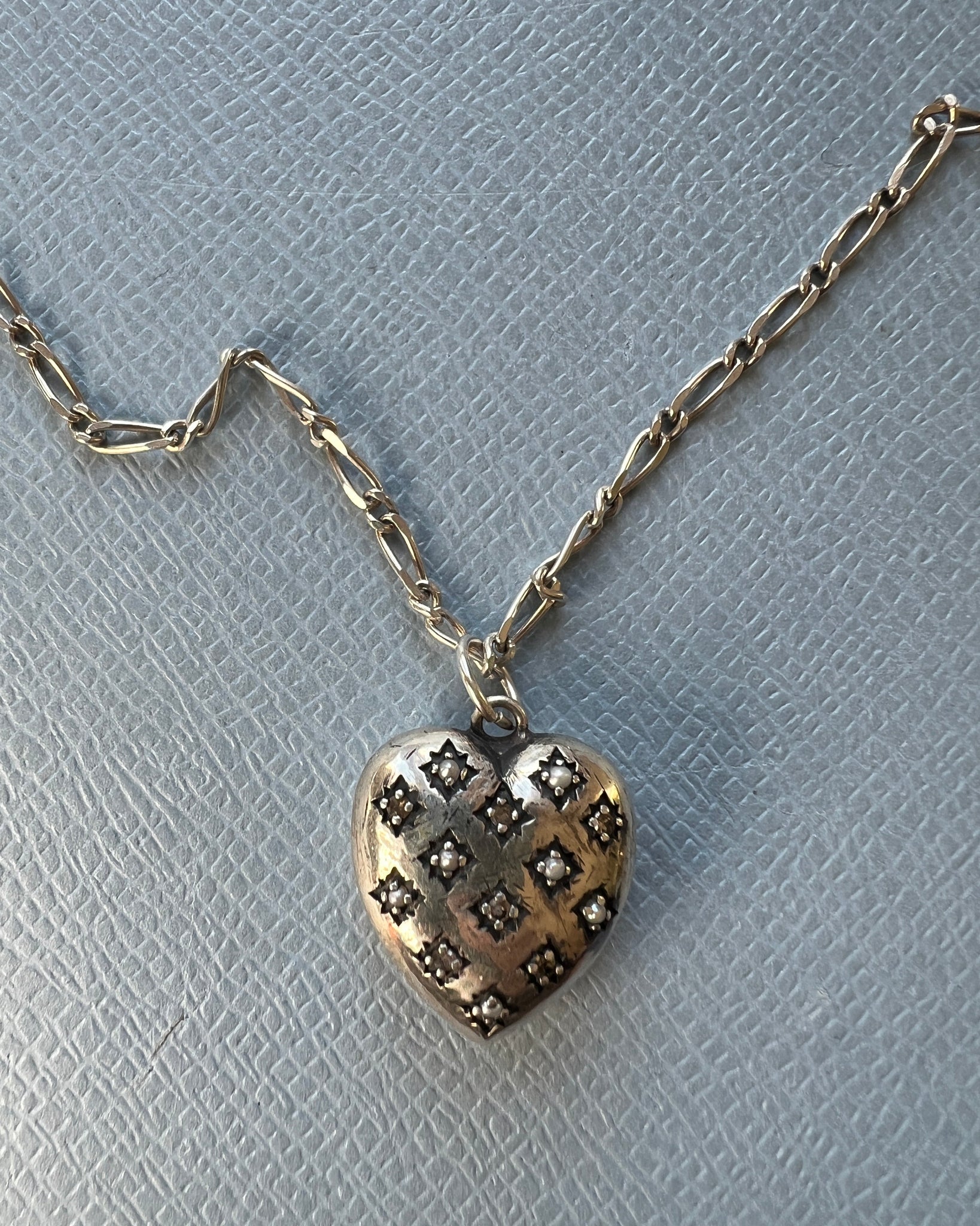 Diamond Pearl Heart Silver Pendant – Vintage Silver Chain