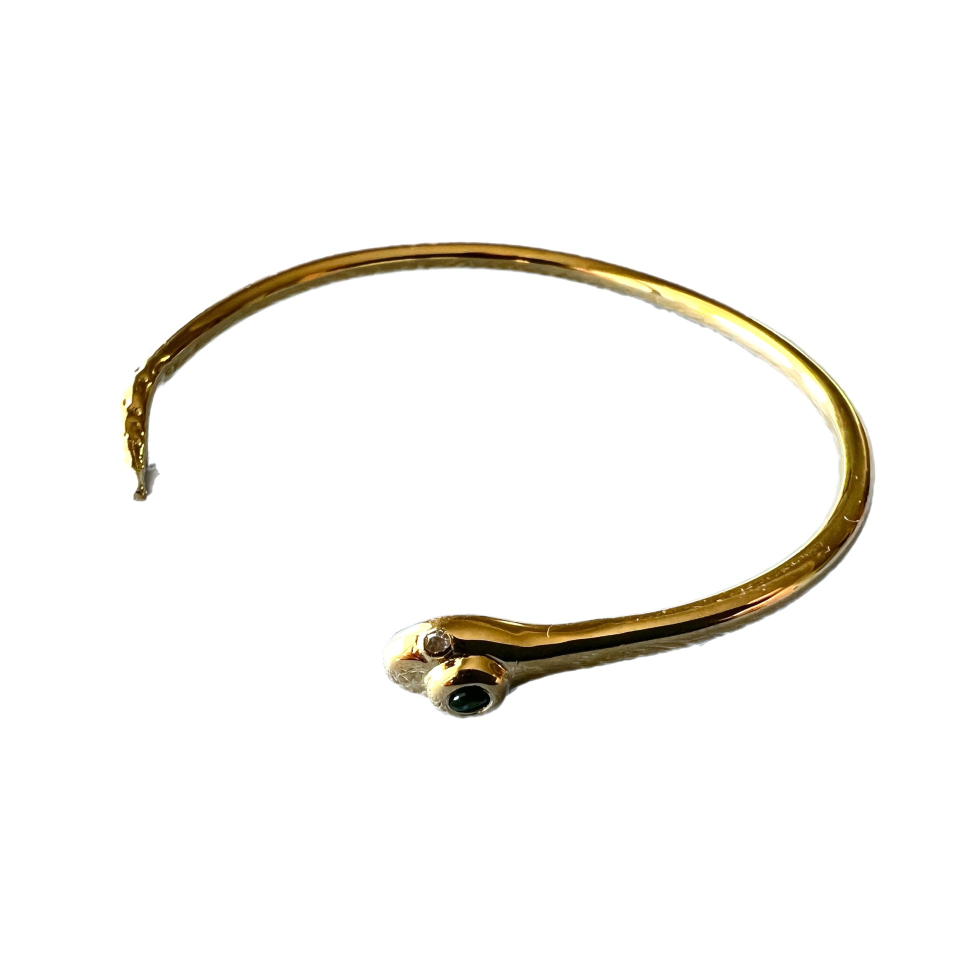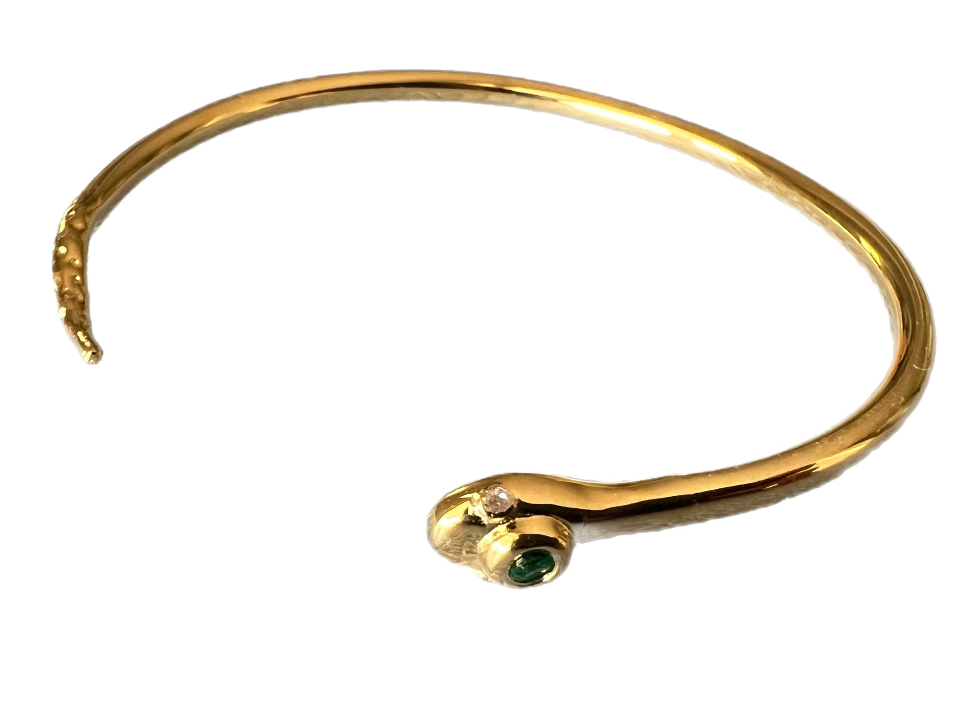 Unearth the fascinating symbology and healing potential in this hand crafted Emerald White Diamond Gold Plated Snake Bangle.