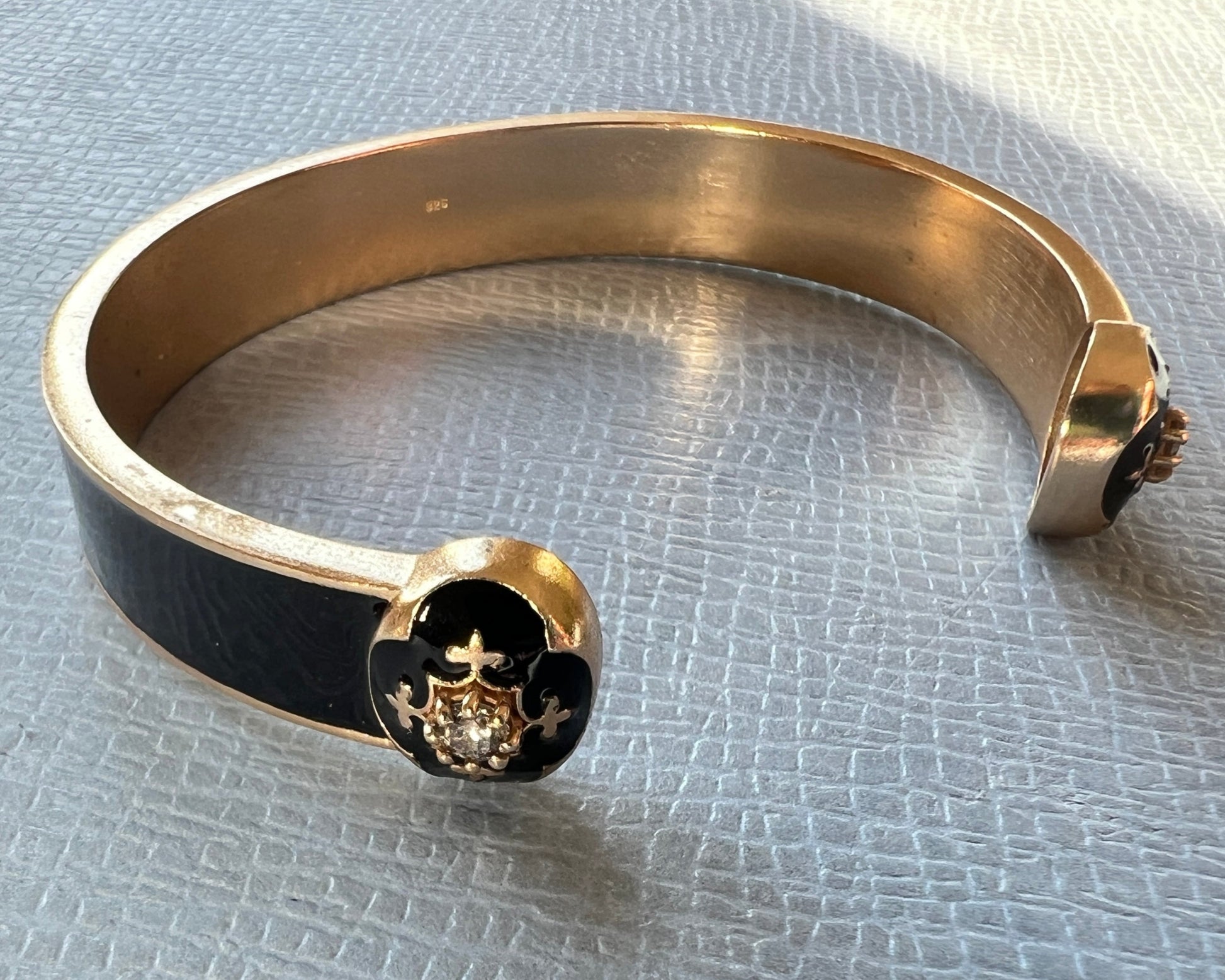 Fleur de Lis Cuff Bracelet Black Enamel