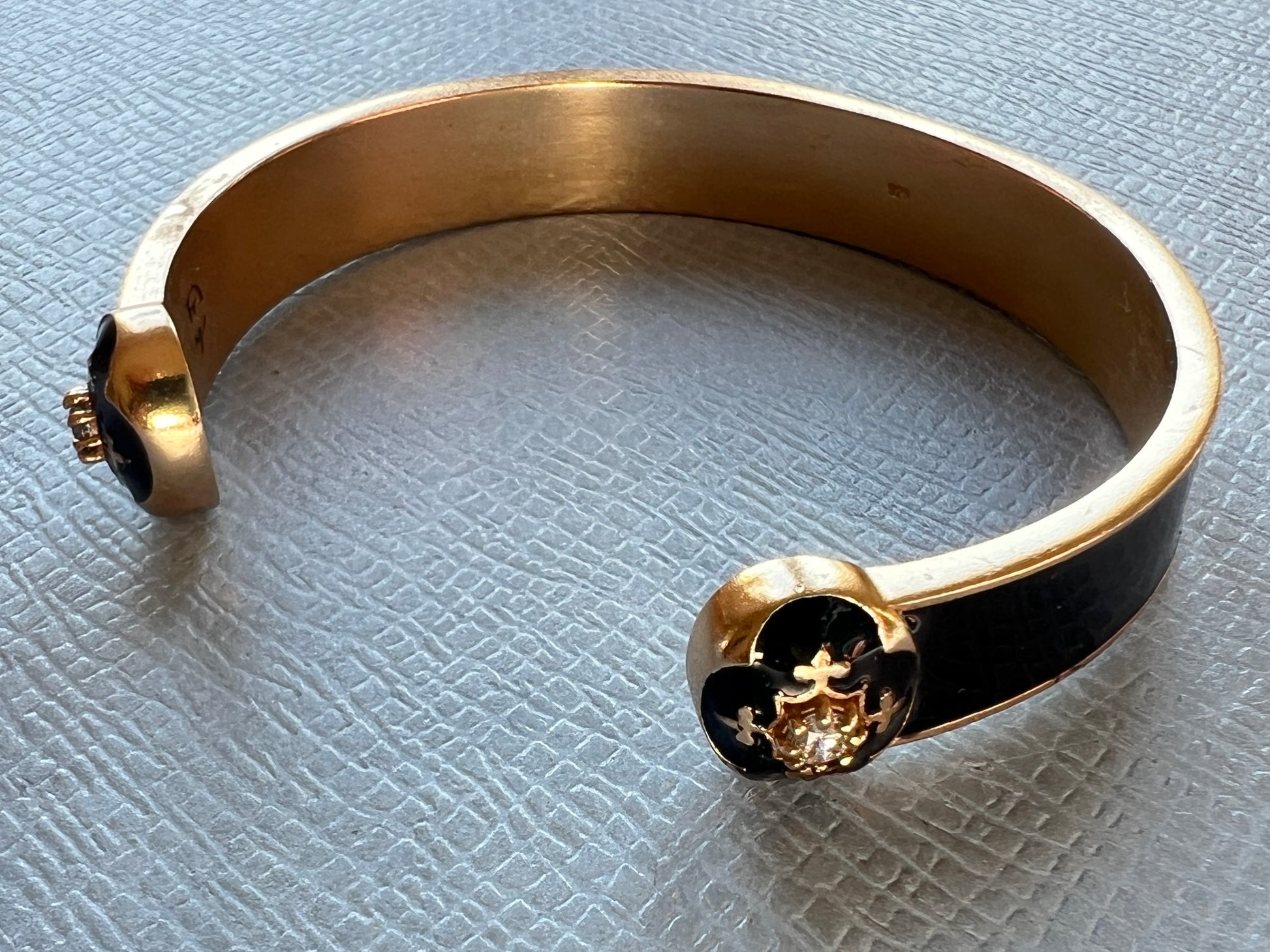Fleur de Lis Cuff Bracelet – 14K Gold-Plate and Black Enamel
