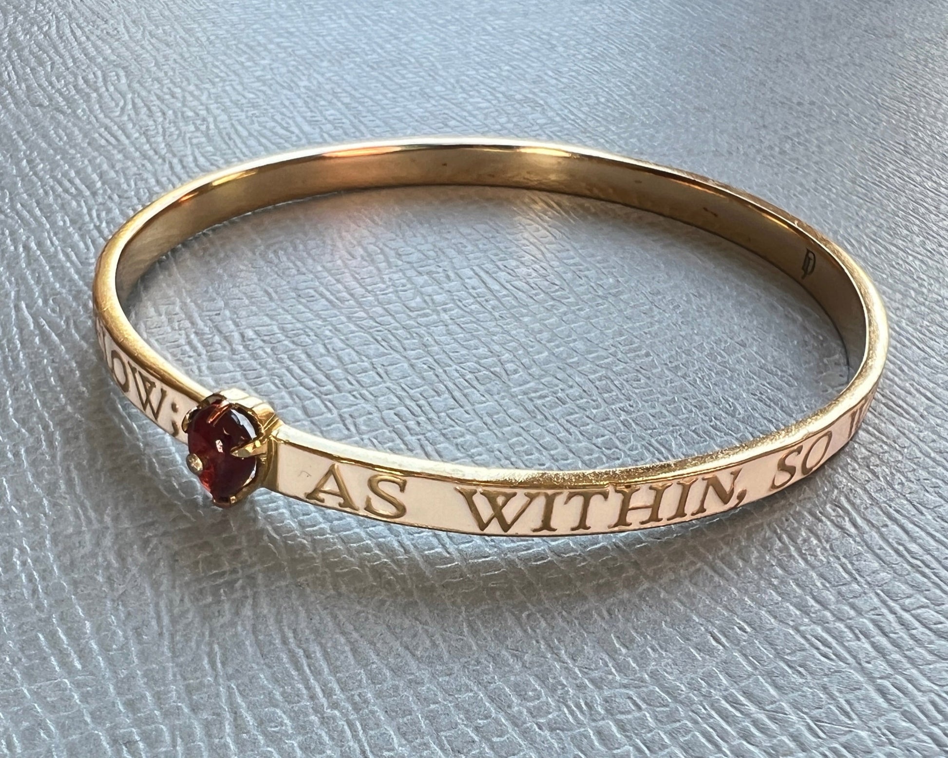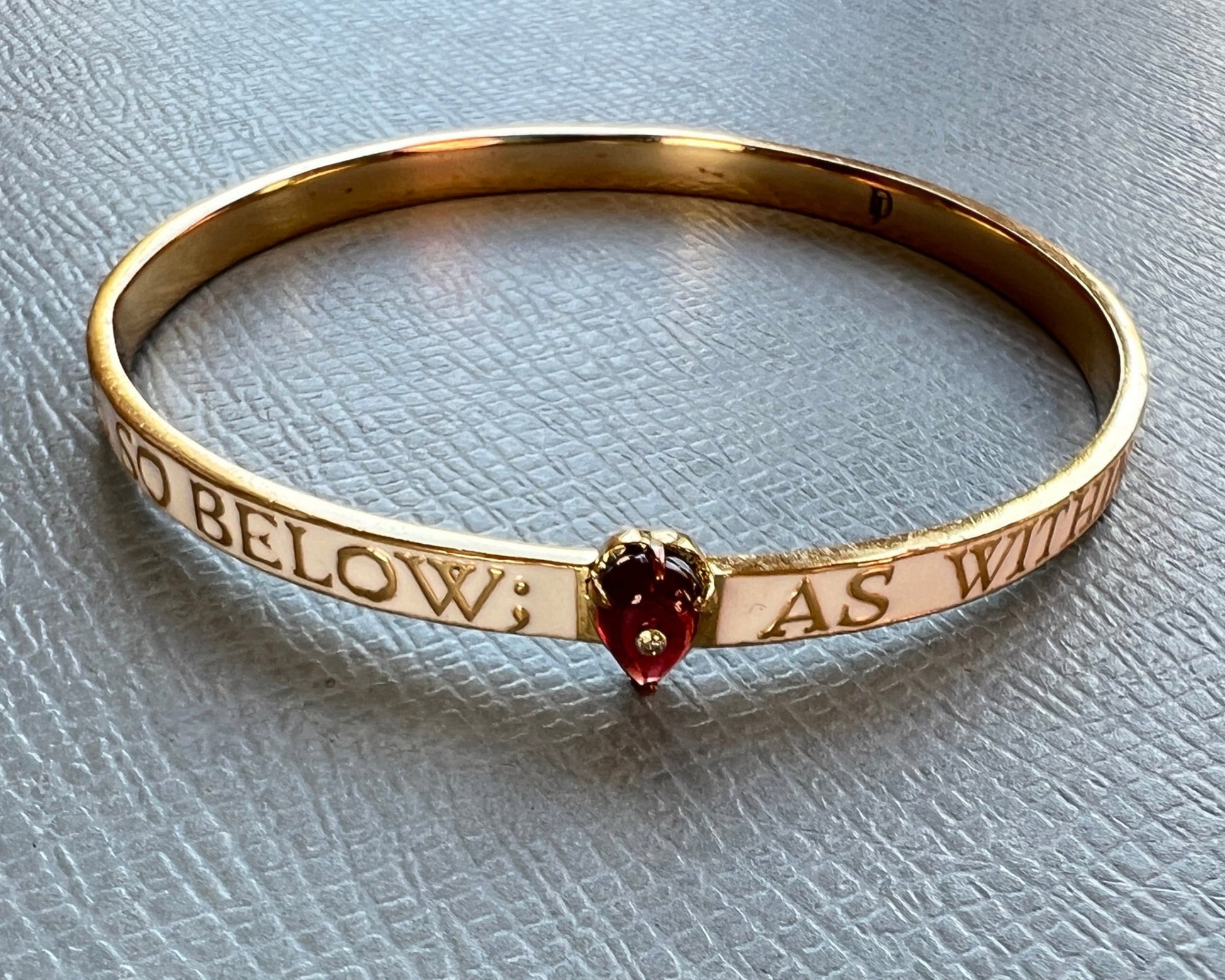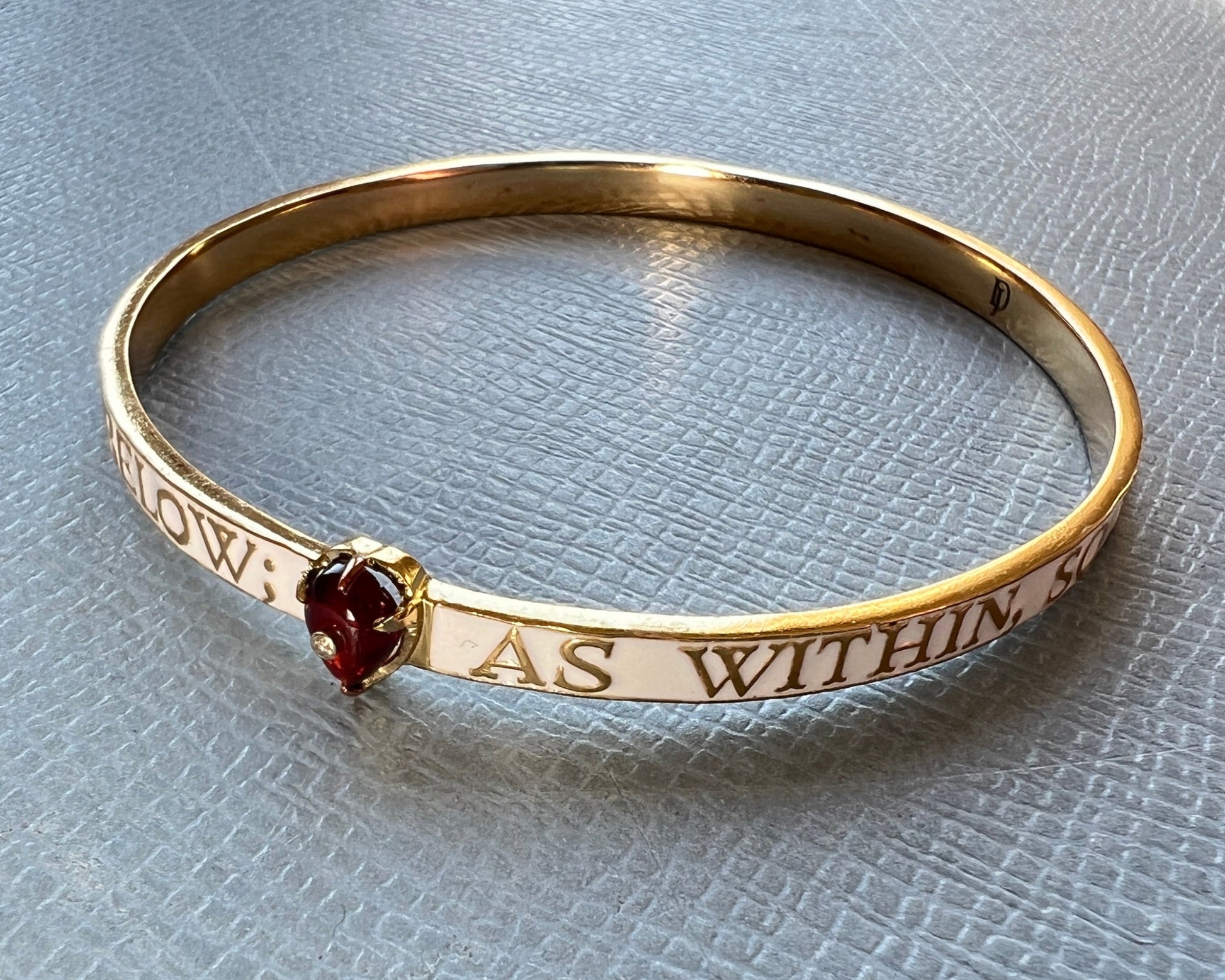 Garnet Diamond Bangle Bracelet, made in 14K gold-plated brass with White Enamel