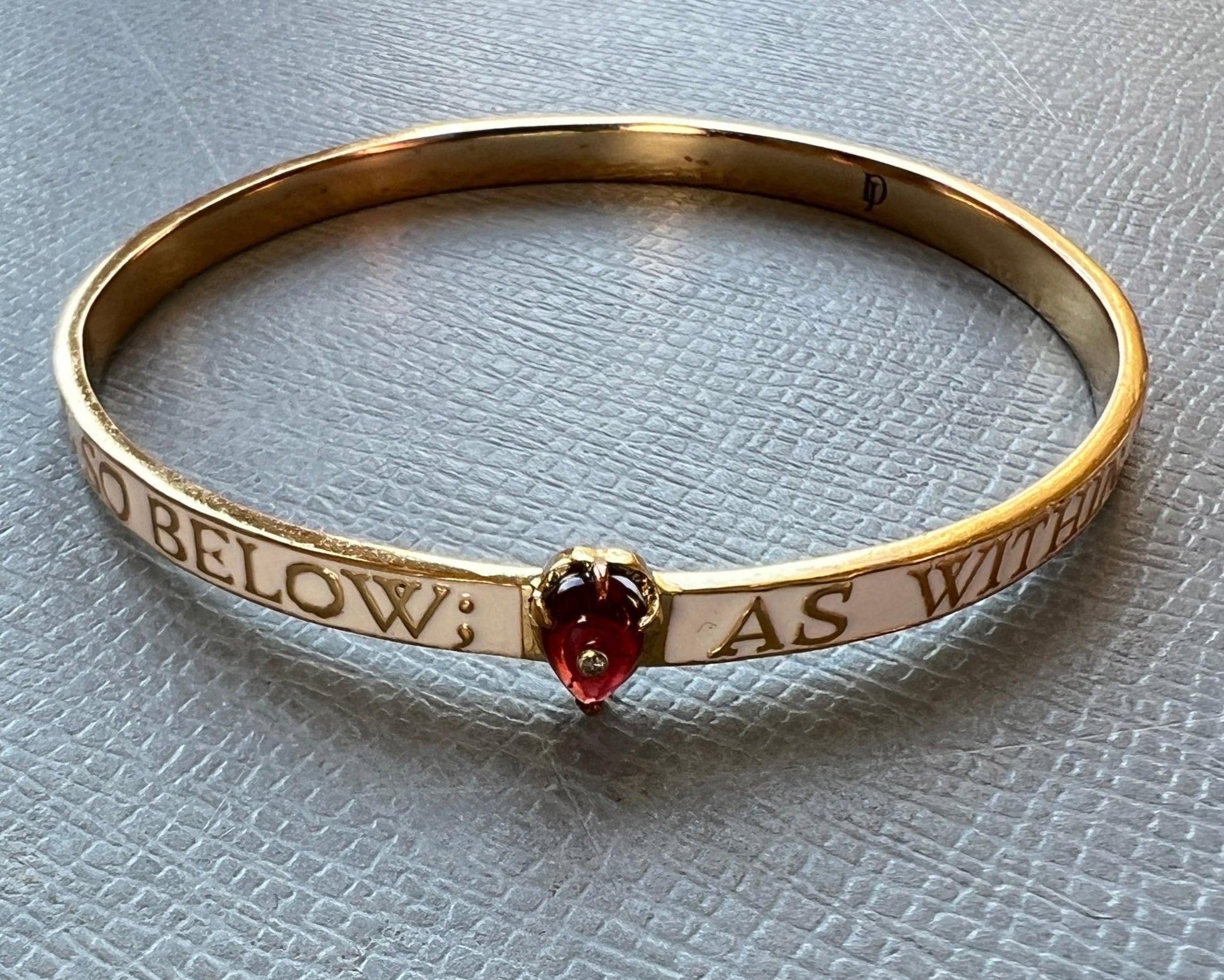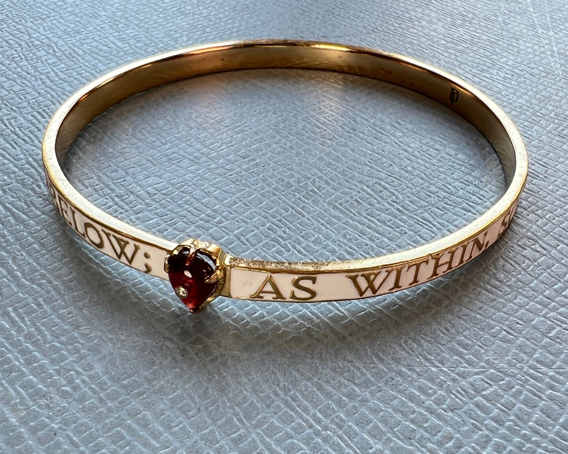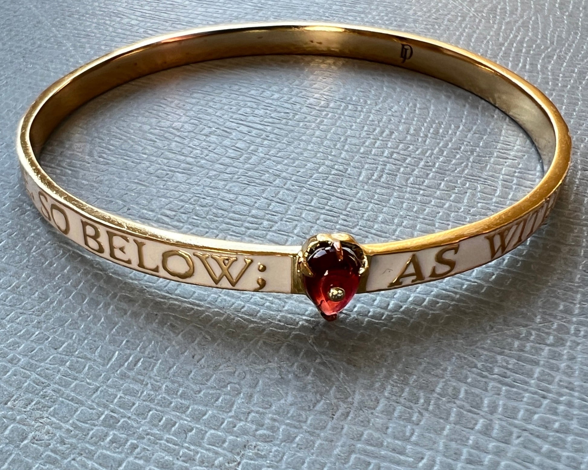 Garnet Diamond Bangle Bracelet, made in 14K gold-plated brass with White Enamel