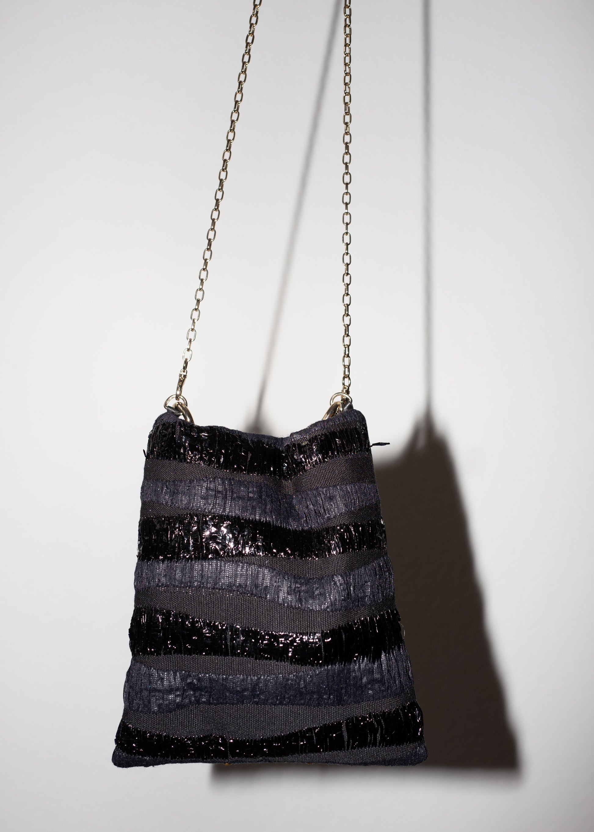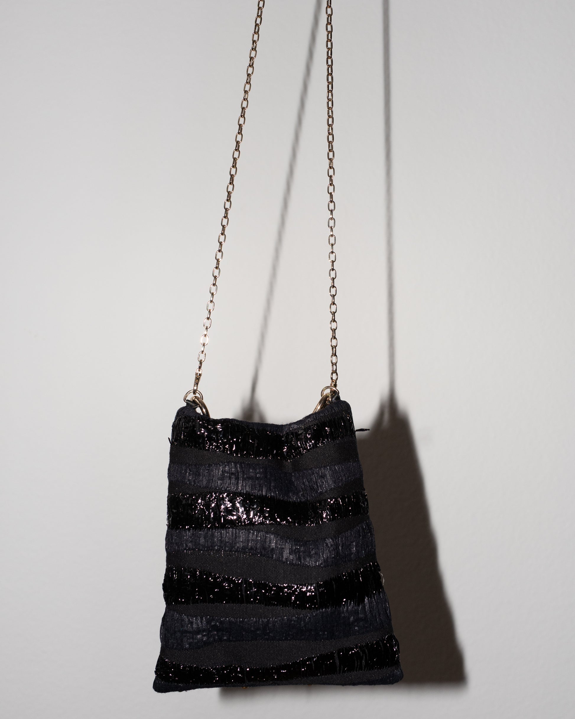 This Leather bag is a one of a kind bag made of French luxury lurex tweed, French Vintage Workwear and Italian Chains. It is light weight and easy to carry. It's the perfect party bag but can be worn in more causal settings as well. It's a fun, unique piece that are meant to spread joy and make you happy. Enough with heavy boring leatherbags that make you look like everybody else, we feel that you are unique, and a bag should match your individuality but also make you happy. A bag shall be irresistible and talk to your emotions, a piece that creates conversation and makes you dream.