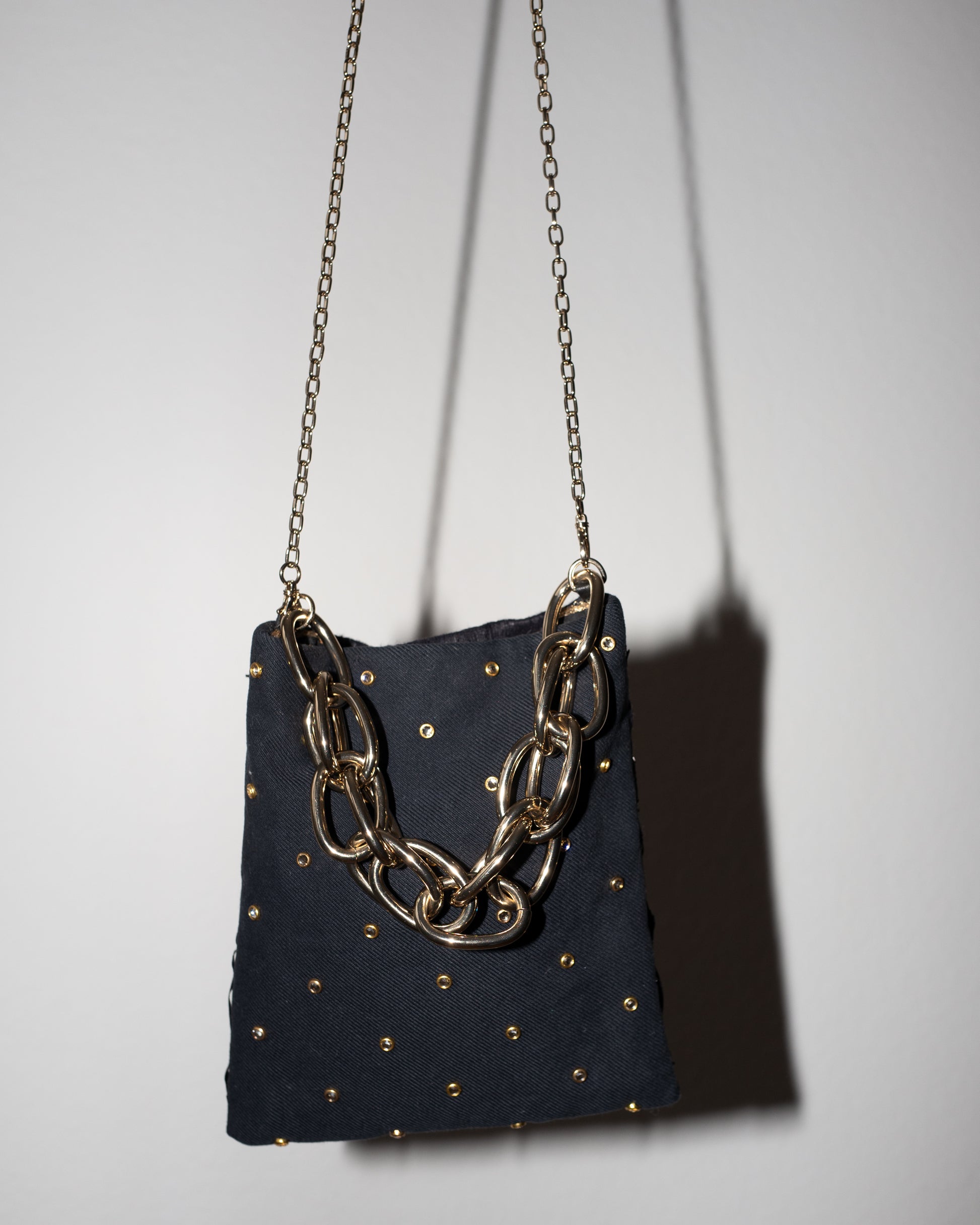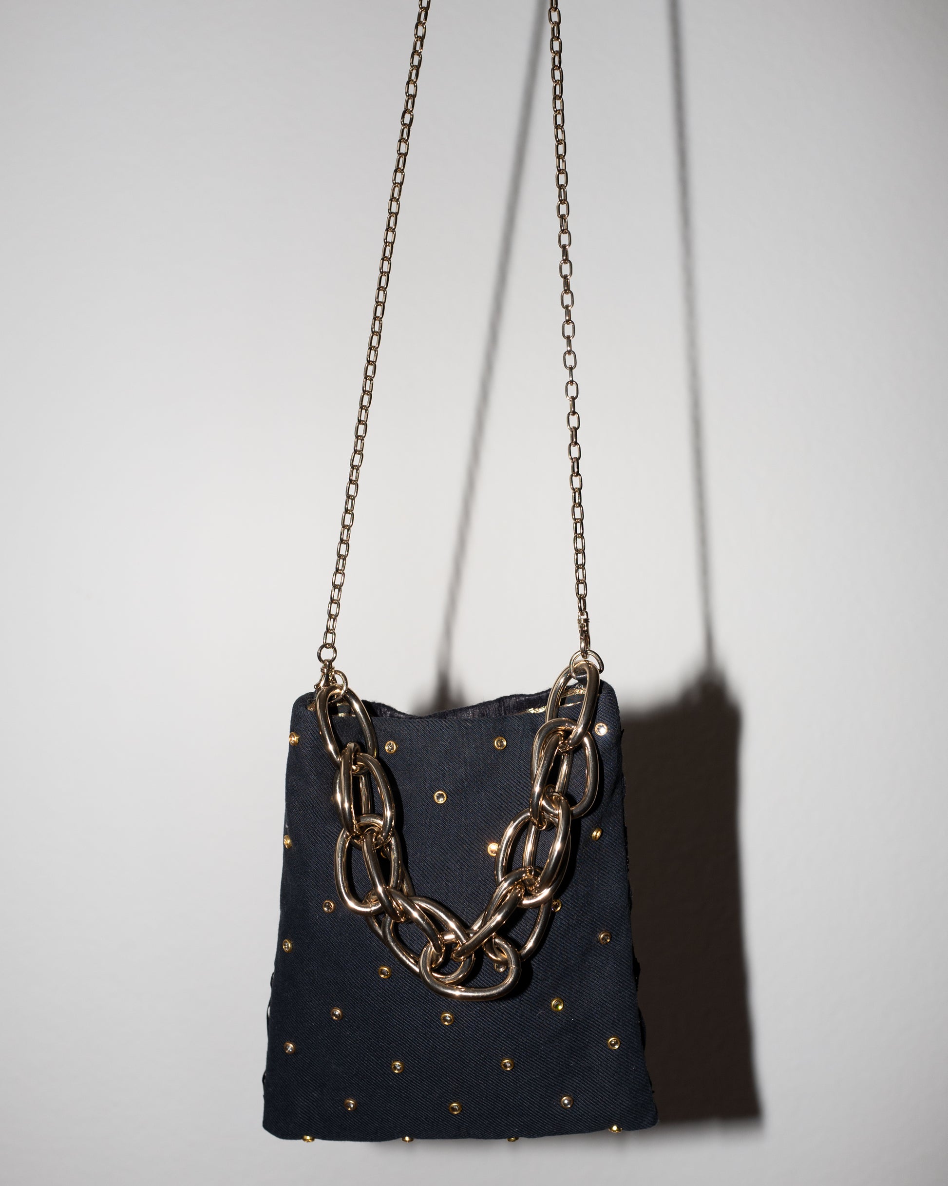 Bag with Swarovski Crystals French Workwear Gold Chain