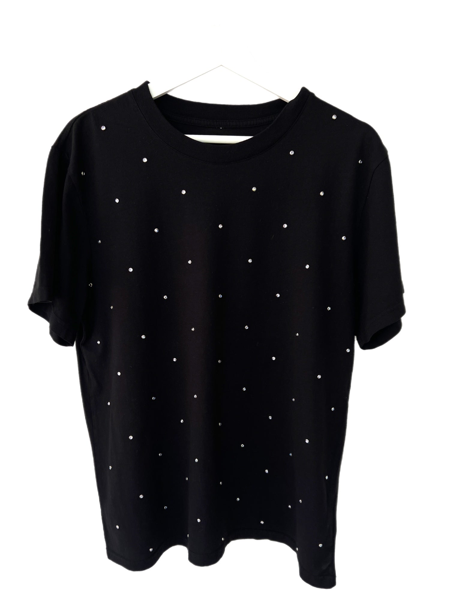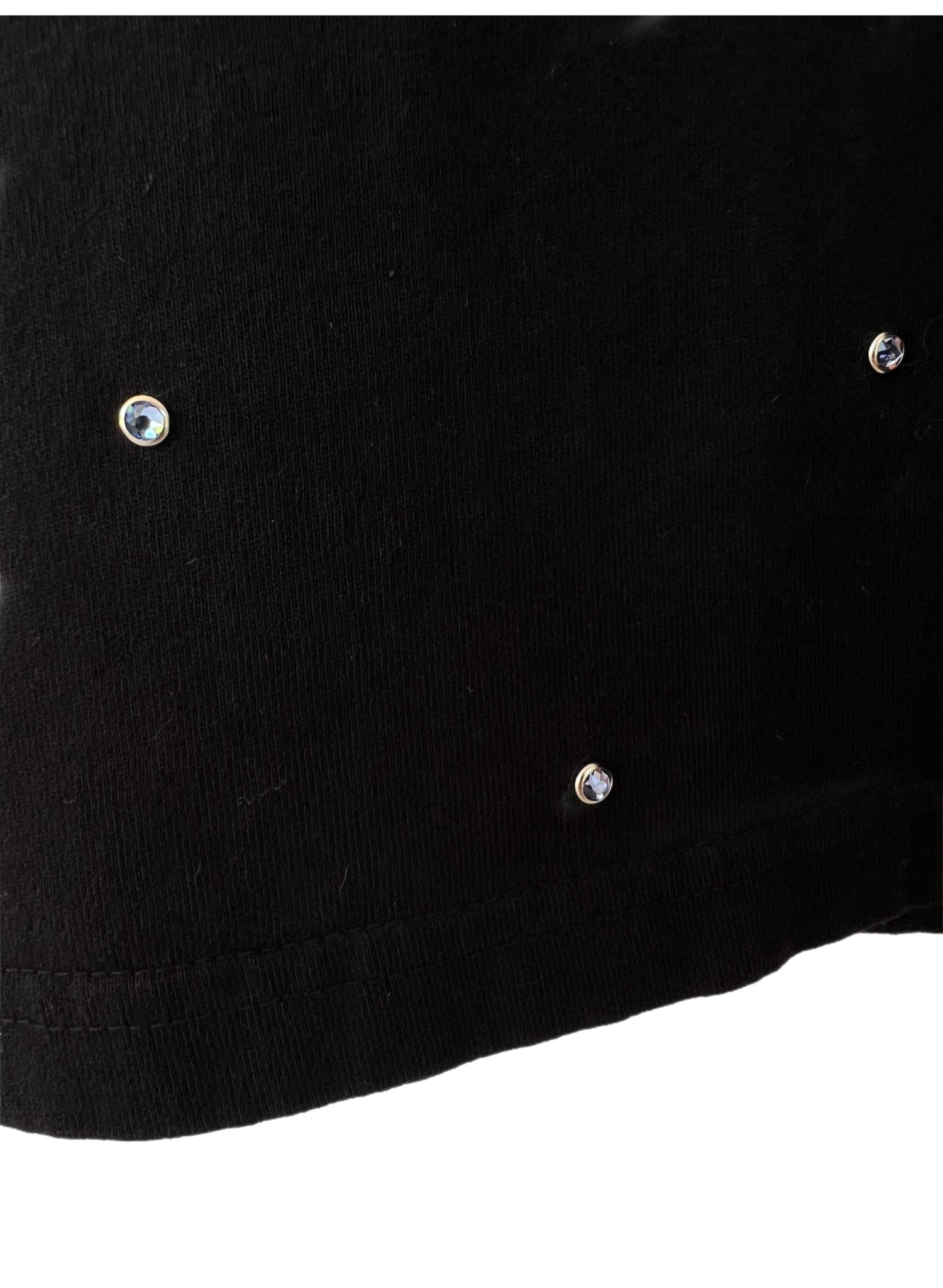 Light Blue Swarovski Crystal Black Cotton T-Shirt