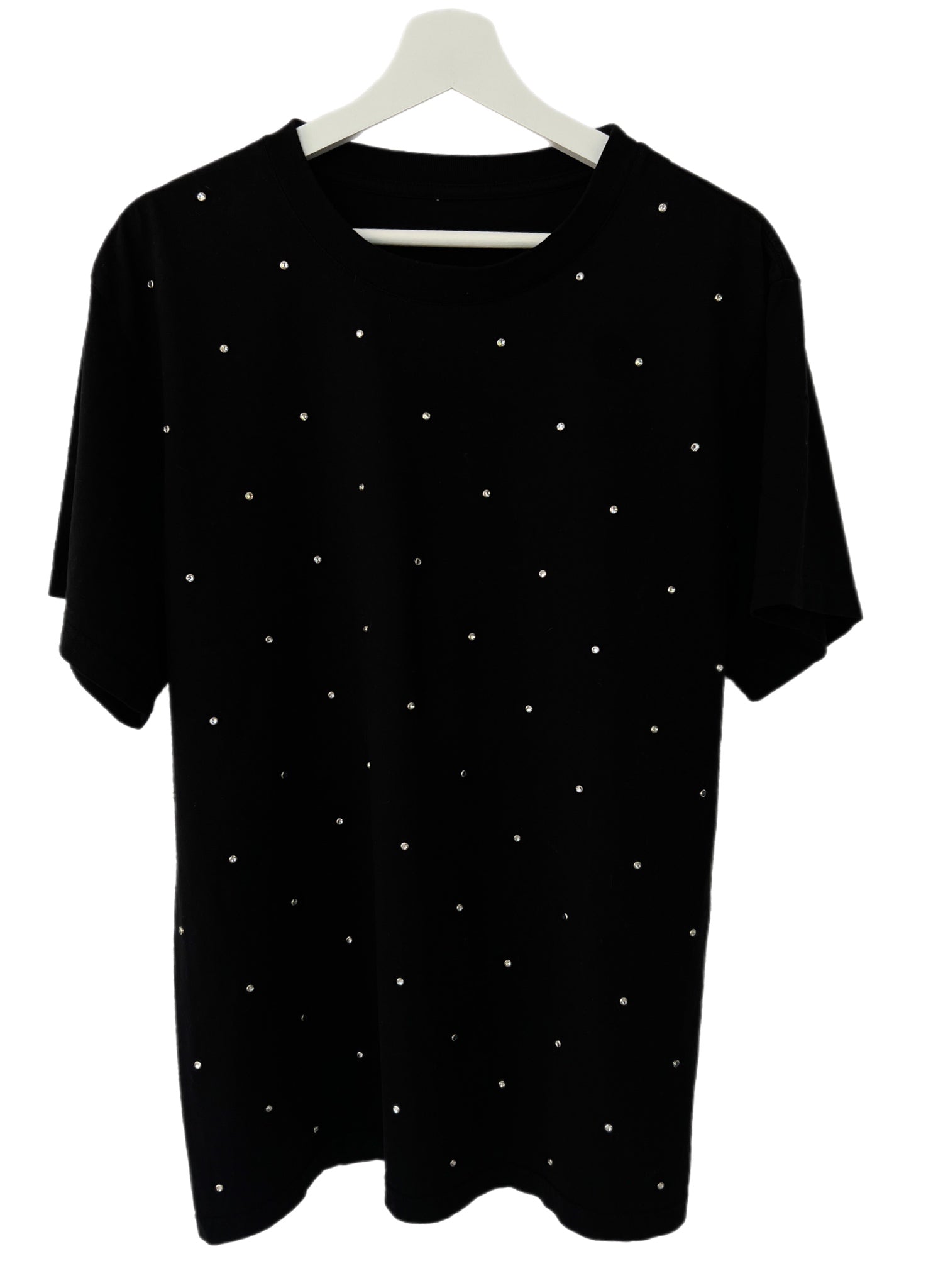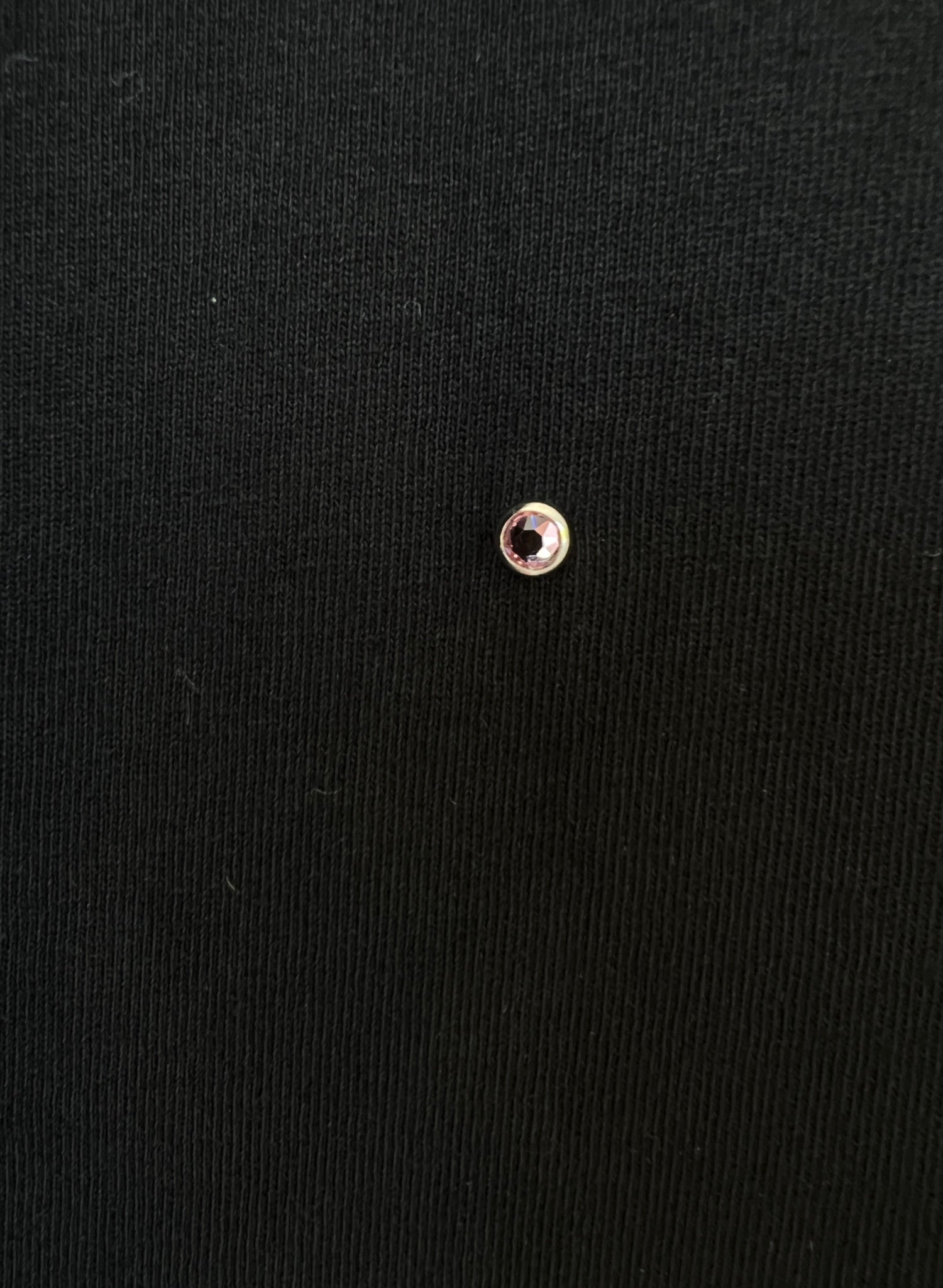 Light Pink Swarovski Crystal Black Cotton T-Shirt