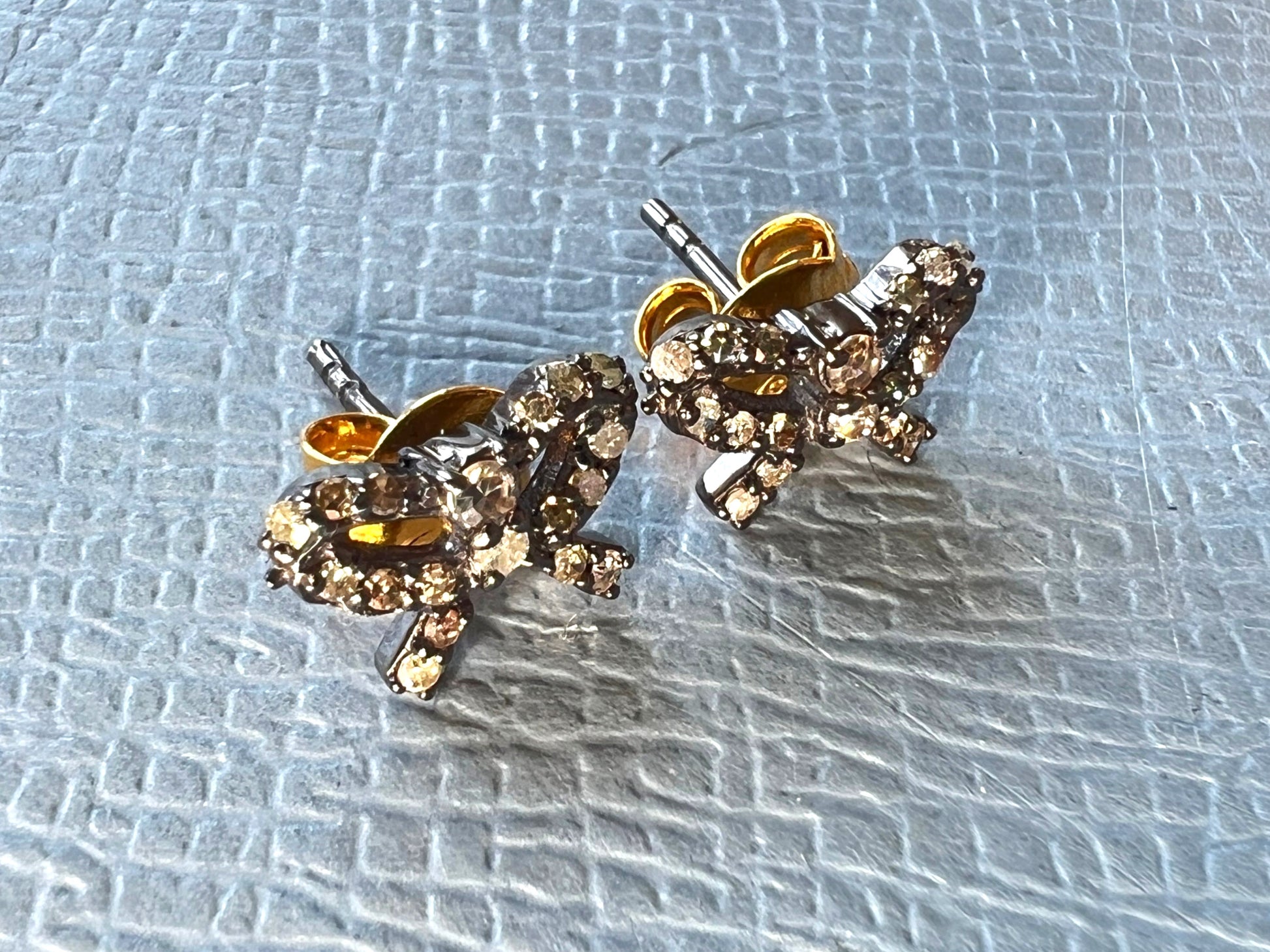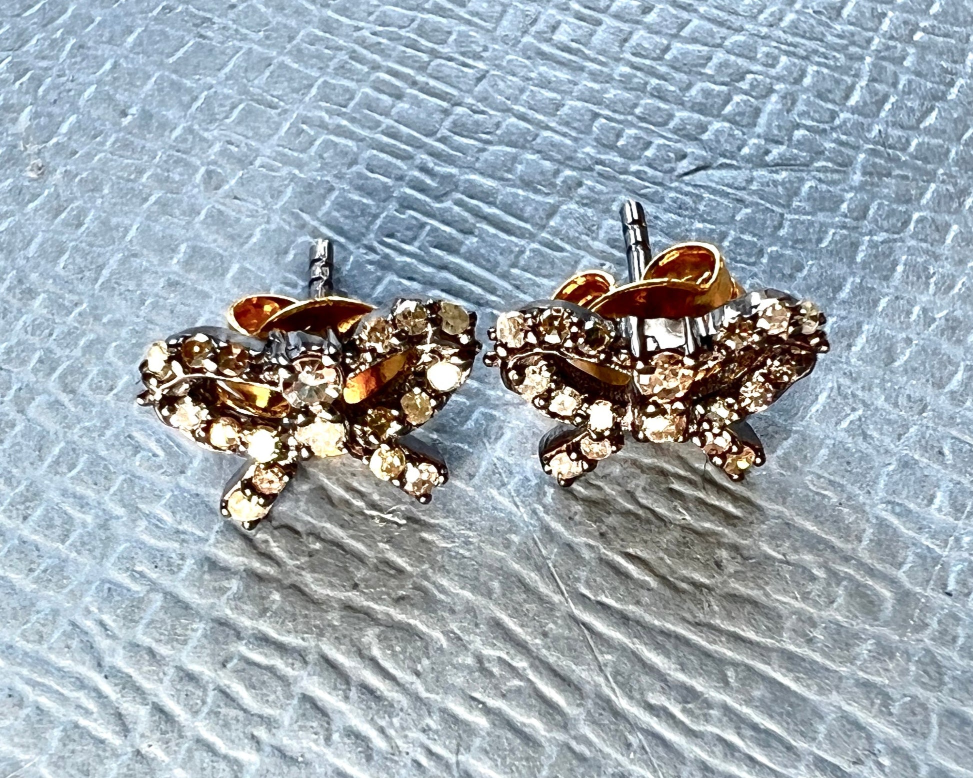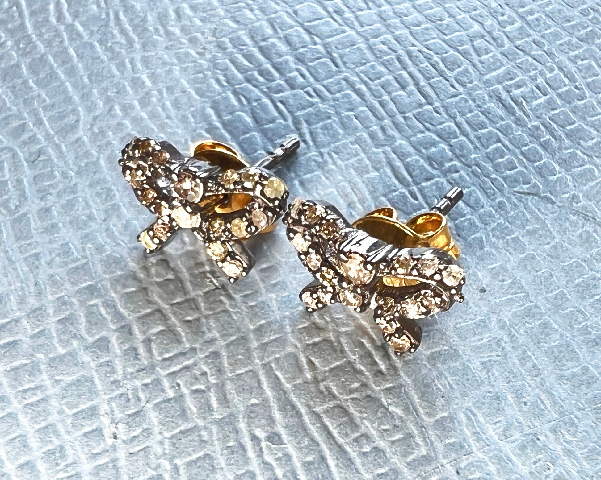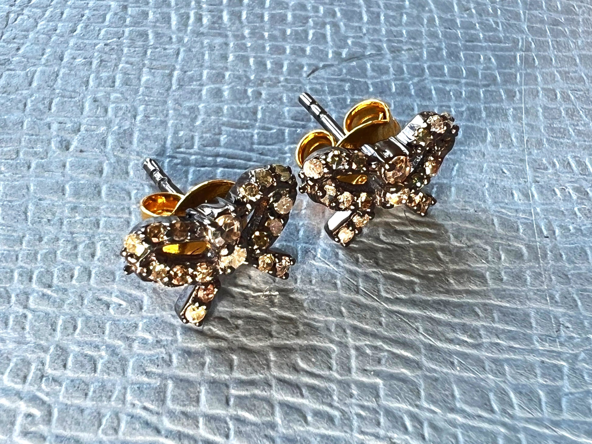 Raw Diamond Bow Stud Earring , made in 14K Black gold plated Silver