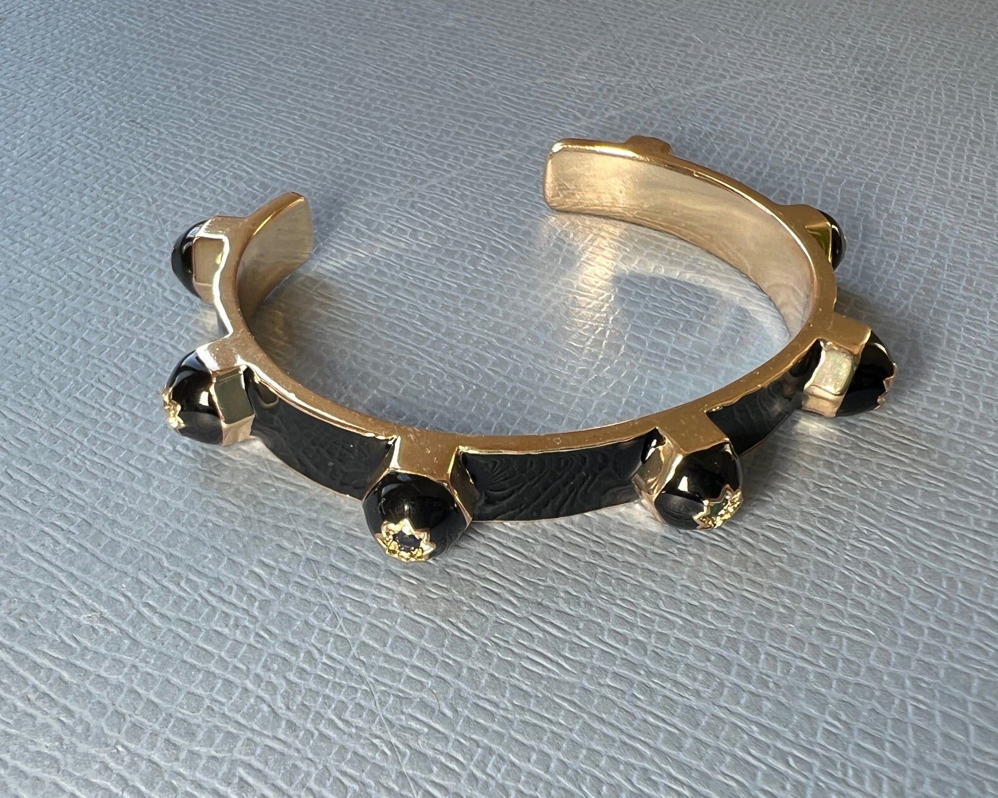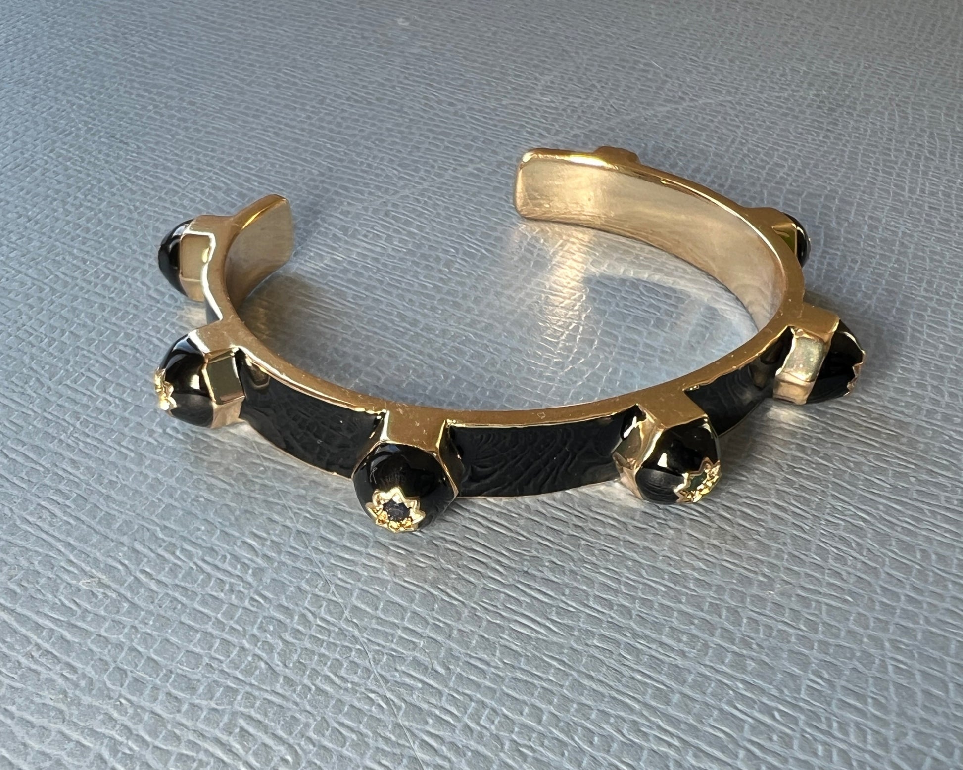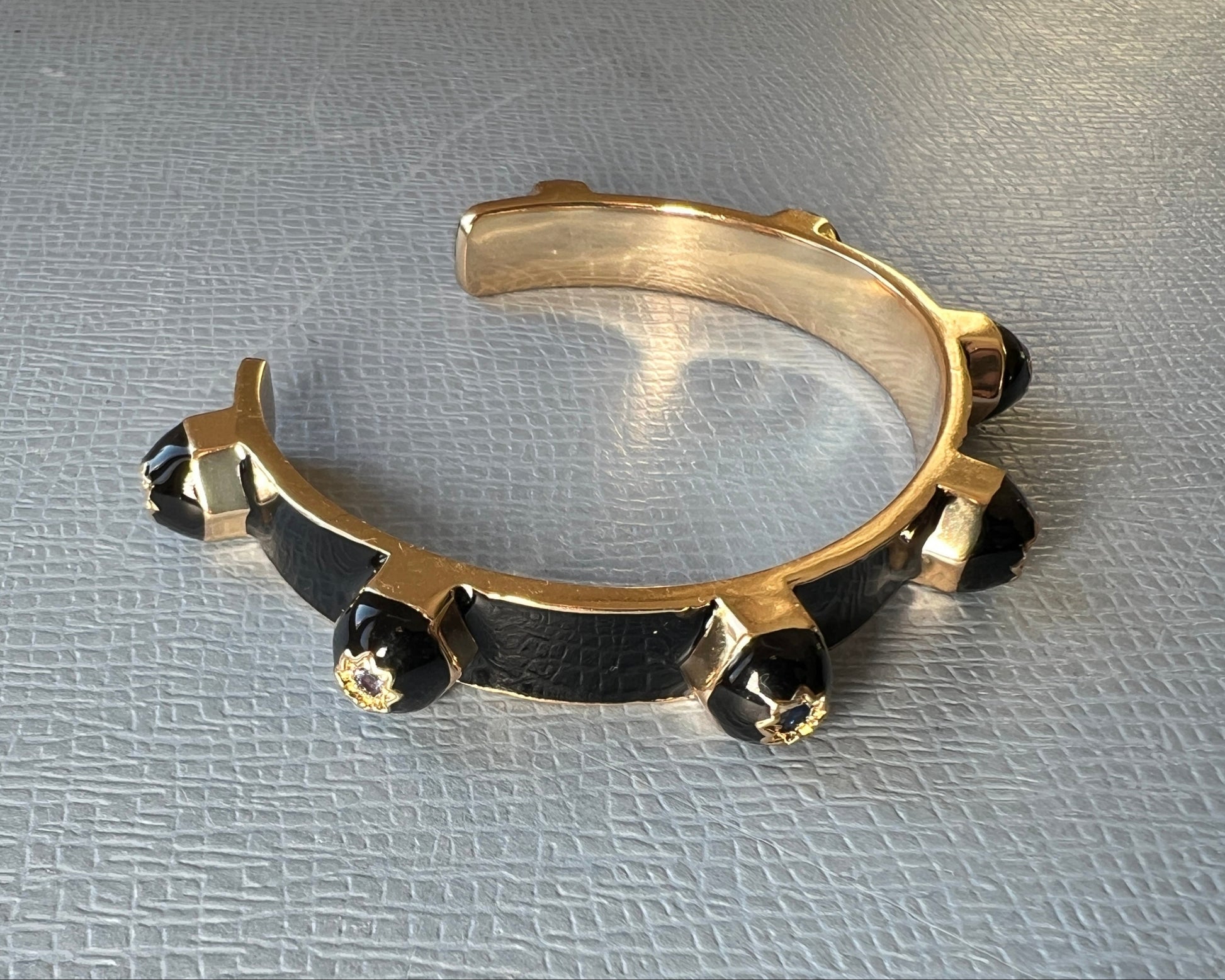 Tanzanite Stud Bangle Black Enamel – 14K Gold Plate