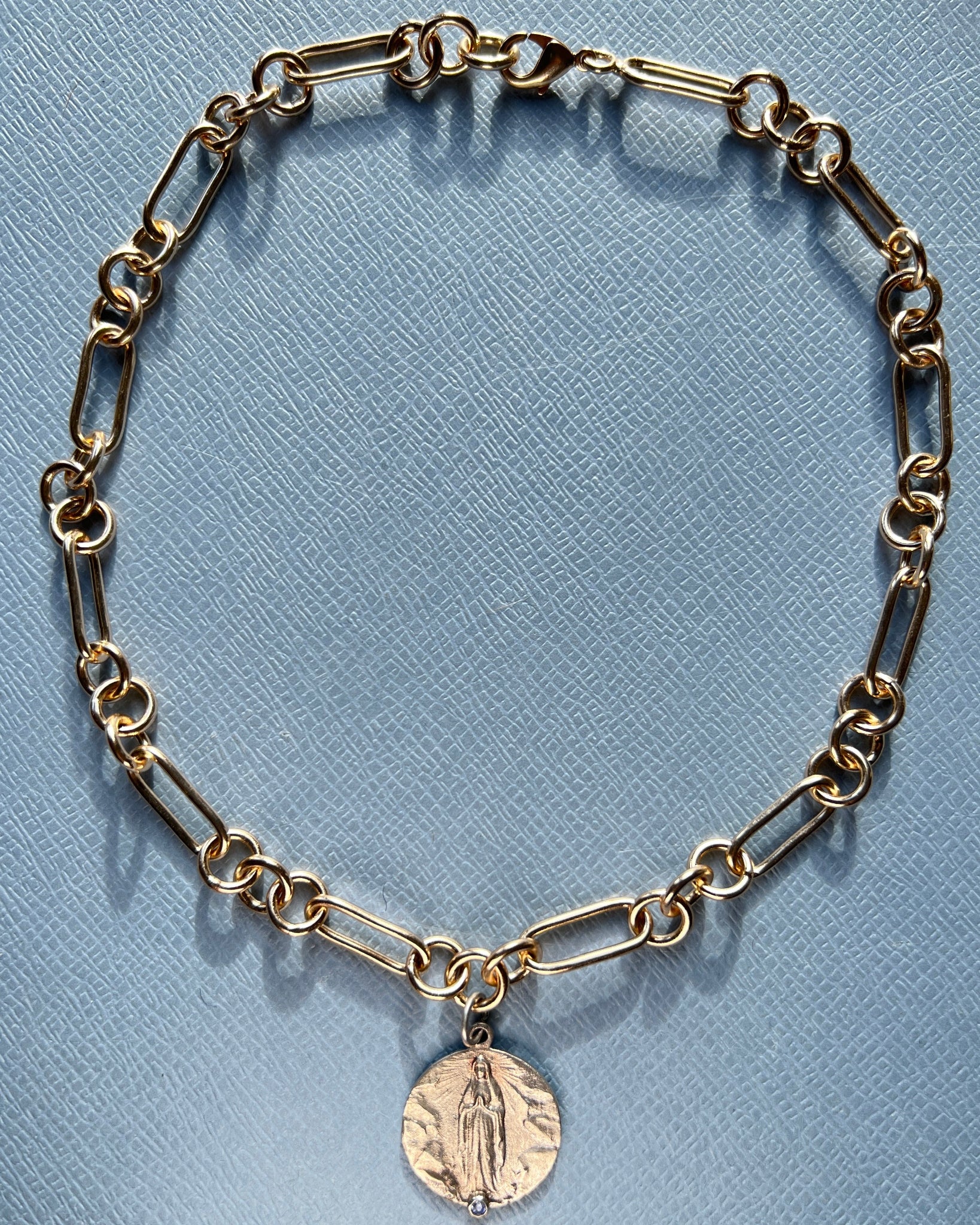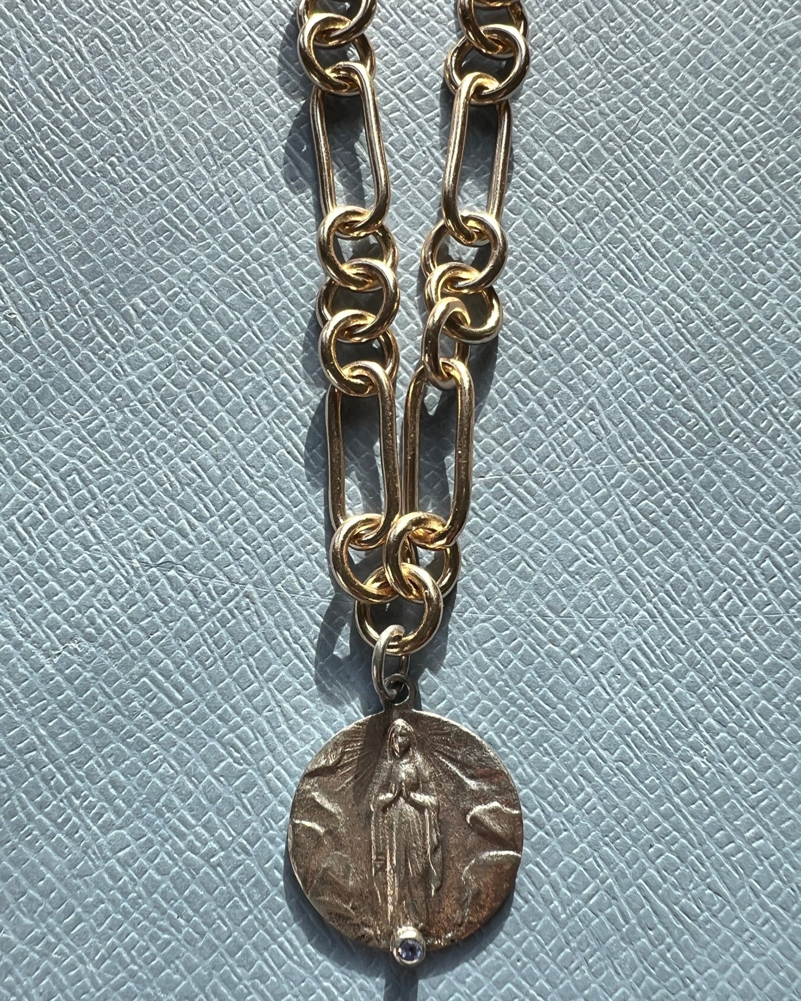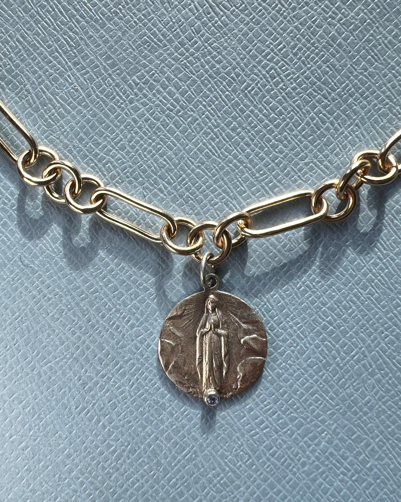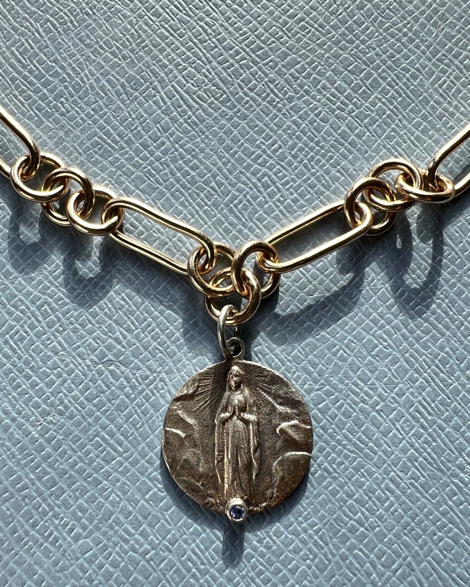 Tanzanite Virgin Mary Medal Necklace– 14K Gold-Plate Choker