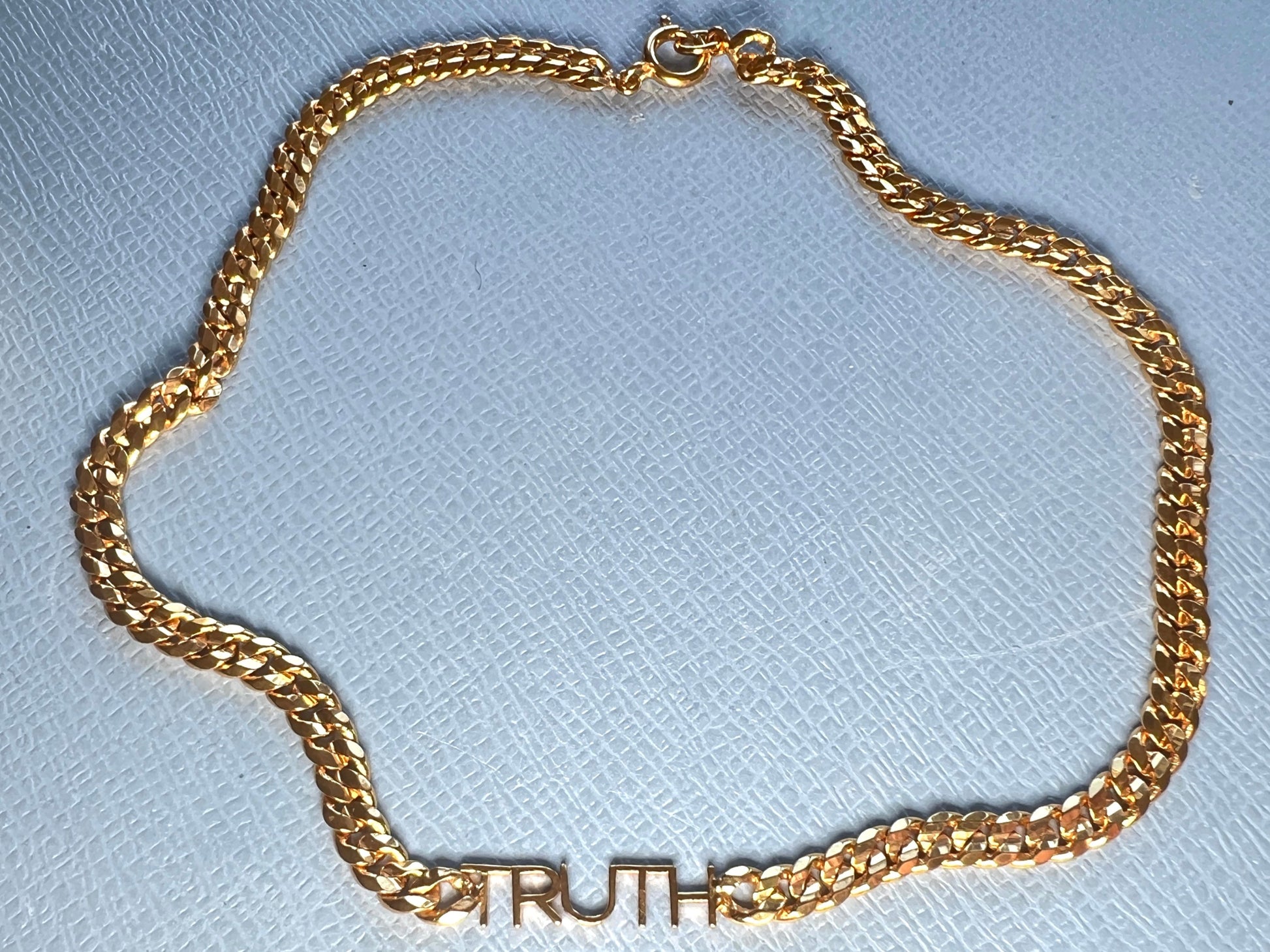 A Gold plated Choker Necklace, with the word TRUTH. Crafted in 18K Gold Plated Silver