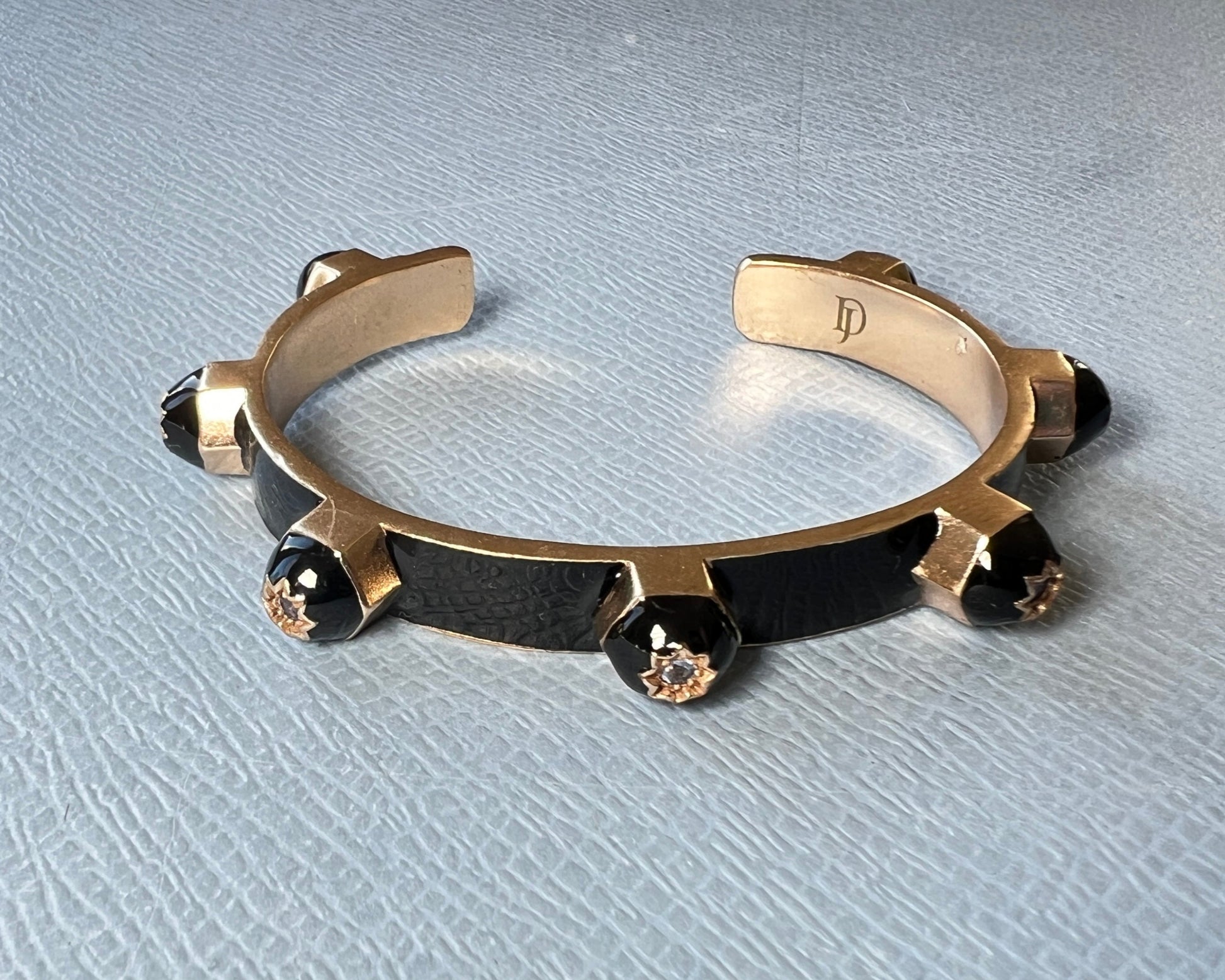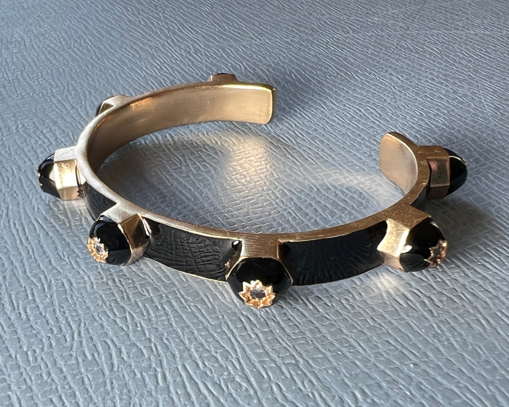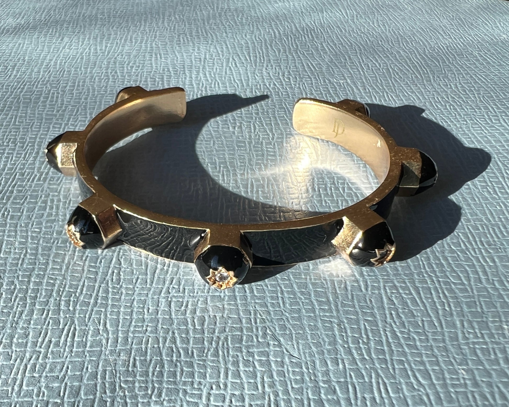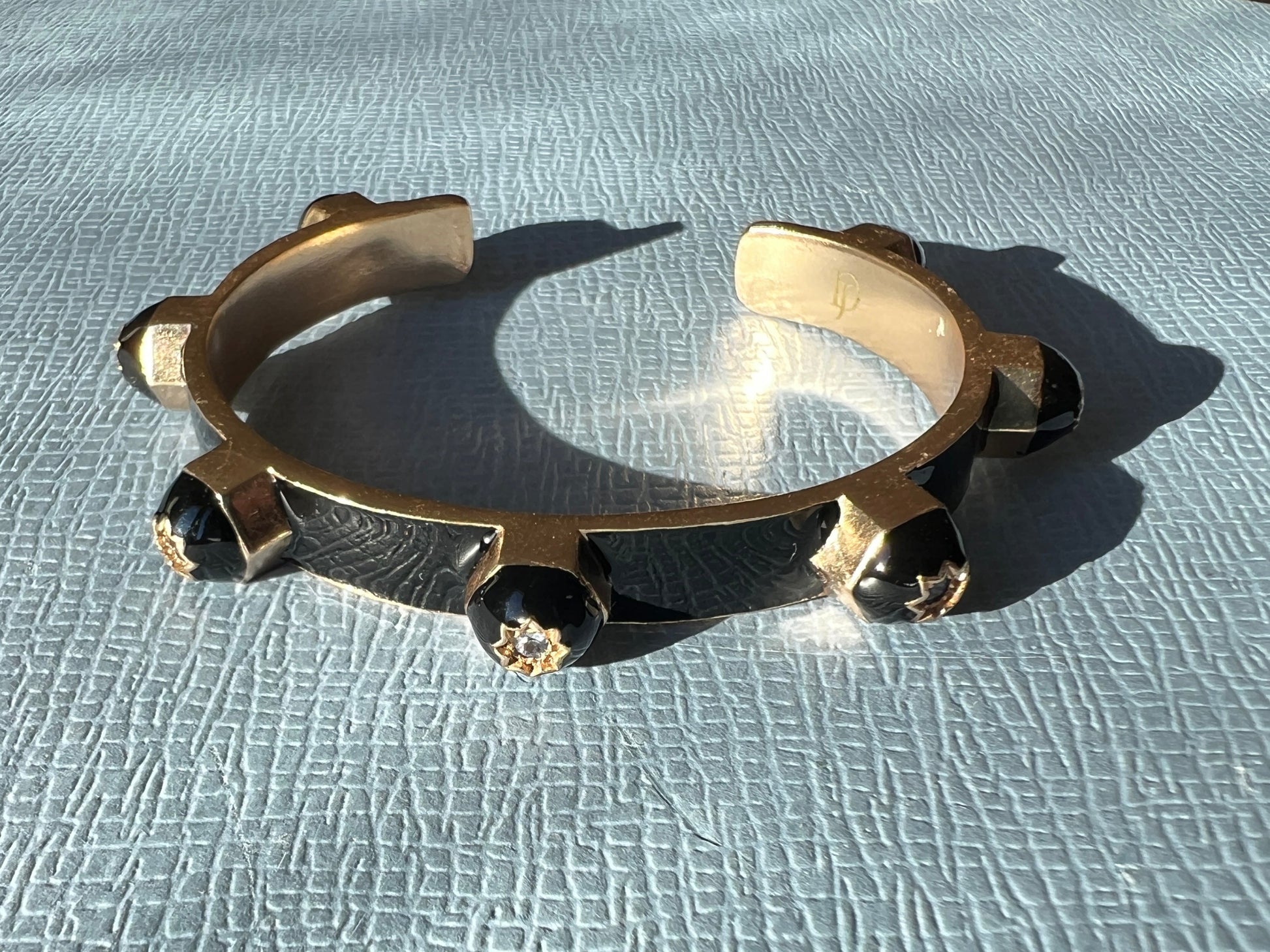White Diamond Stud Bangle Black Enamel – 14K Gold Plate